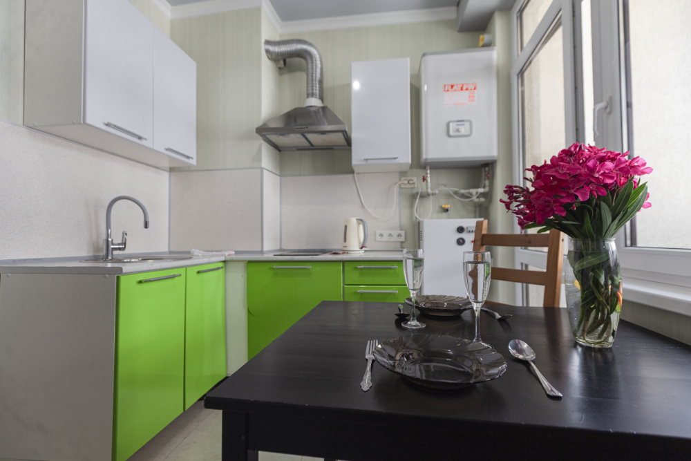 - Современная кухня, оснащенная индукционной плитой, холодильником, электрическим чайником и микроволновой печью, готова удовлетворить любые кулинарные предпочтения.