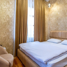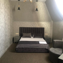 Двухэтажное здание (без лифта) расположено на небольшой закрытой территории на проспекте Шолохова. Отель предлагает гостям двухместные номера семи категорий. В каждом — лаконичный интерьер, современная мебель и техника — телевизор, мини-холодильник, кондиционер. Все комнаты оснащены санузлом с ванной или душем.