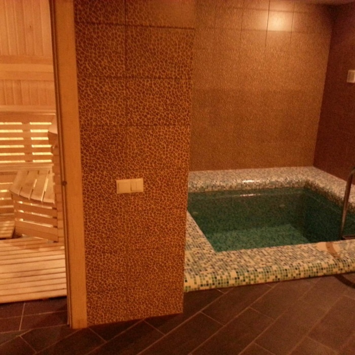 - Просторная сауна с финской парной и бассейном.