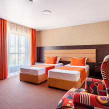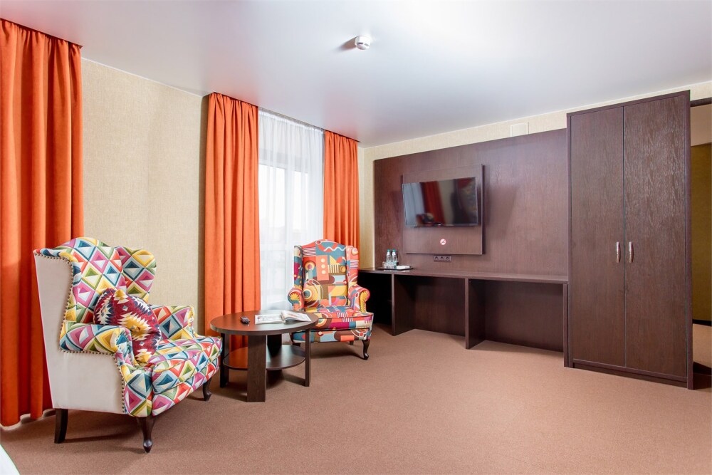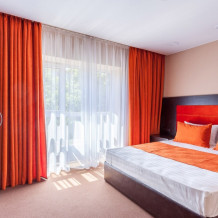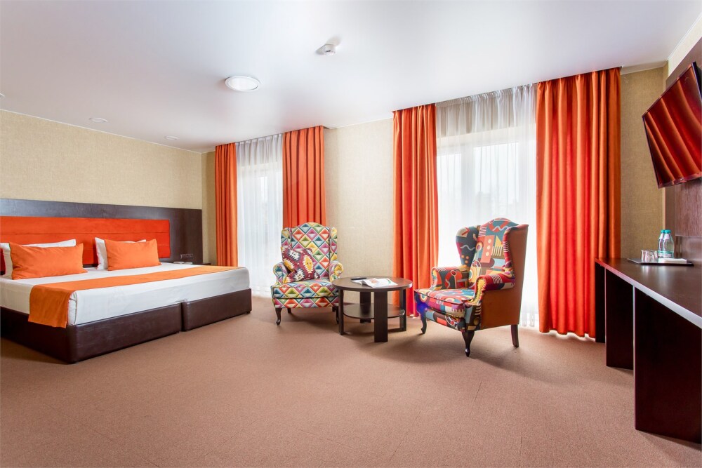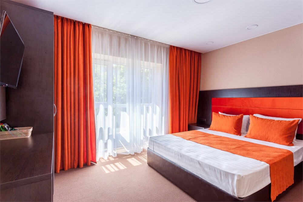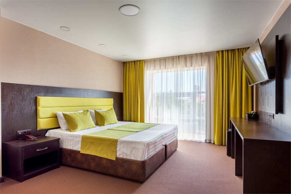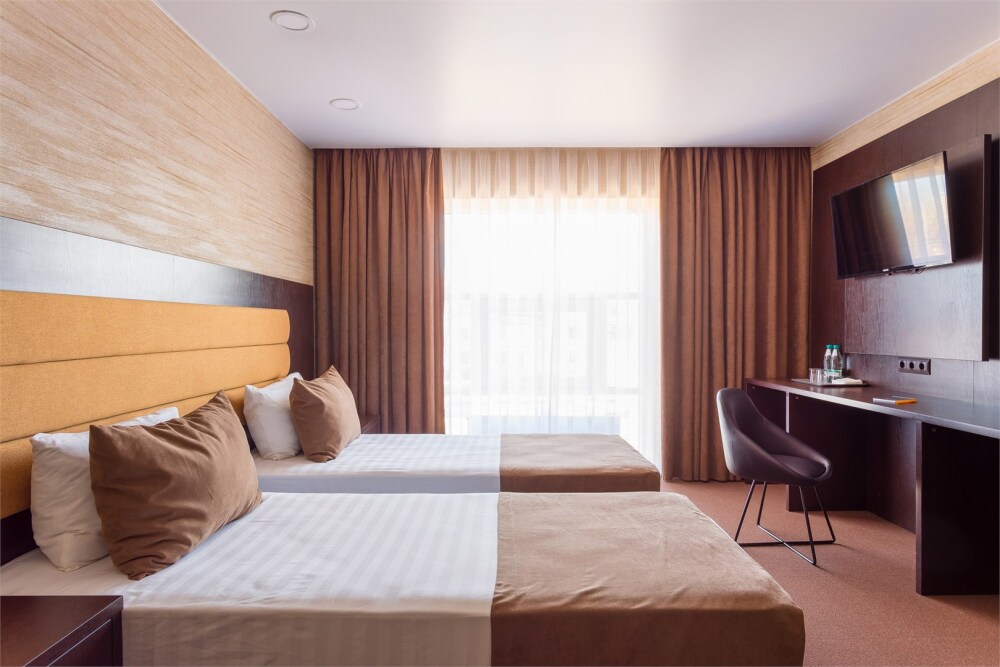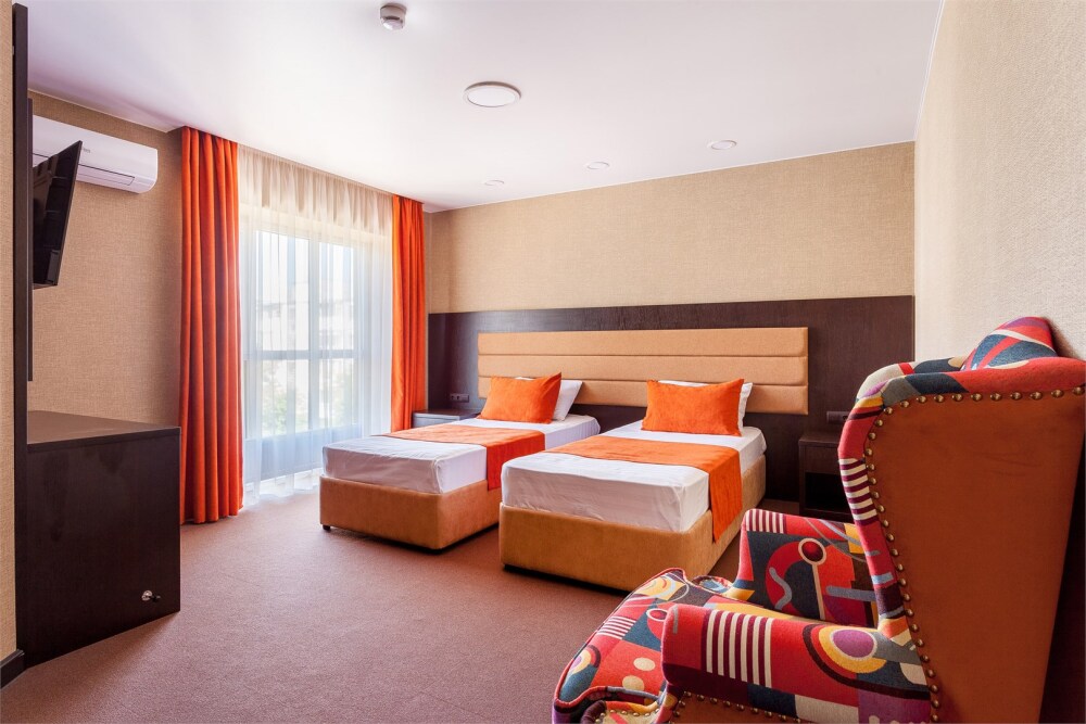 В Вашем распоряжении выбор из 57 номеров европейского уровня, различных категорий. «Стандарт» - это пространство и уют, номера с двумя кроватями, если Вы путешествуете с другом или коллегой, «Люкс» - стильные, просторные номера – отличный выбор для молодоженов или влюбленных, а также людей, кто не привык отказывать себе в комфорте. Мы уверены: дешевый отель – не значит плохой, низкие цены в отелях нашей сети – это, прежде всего, уважение к нашим клиентам.