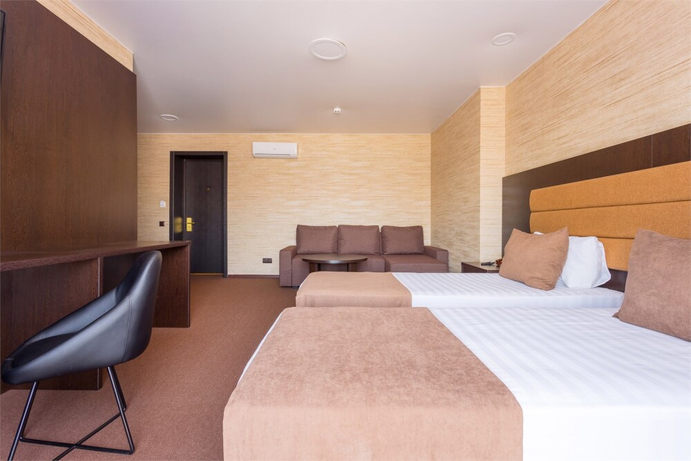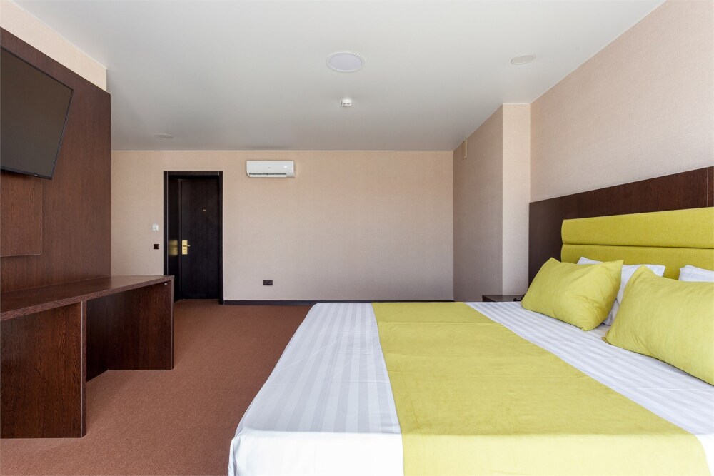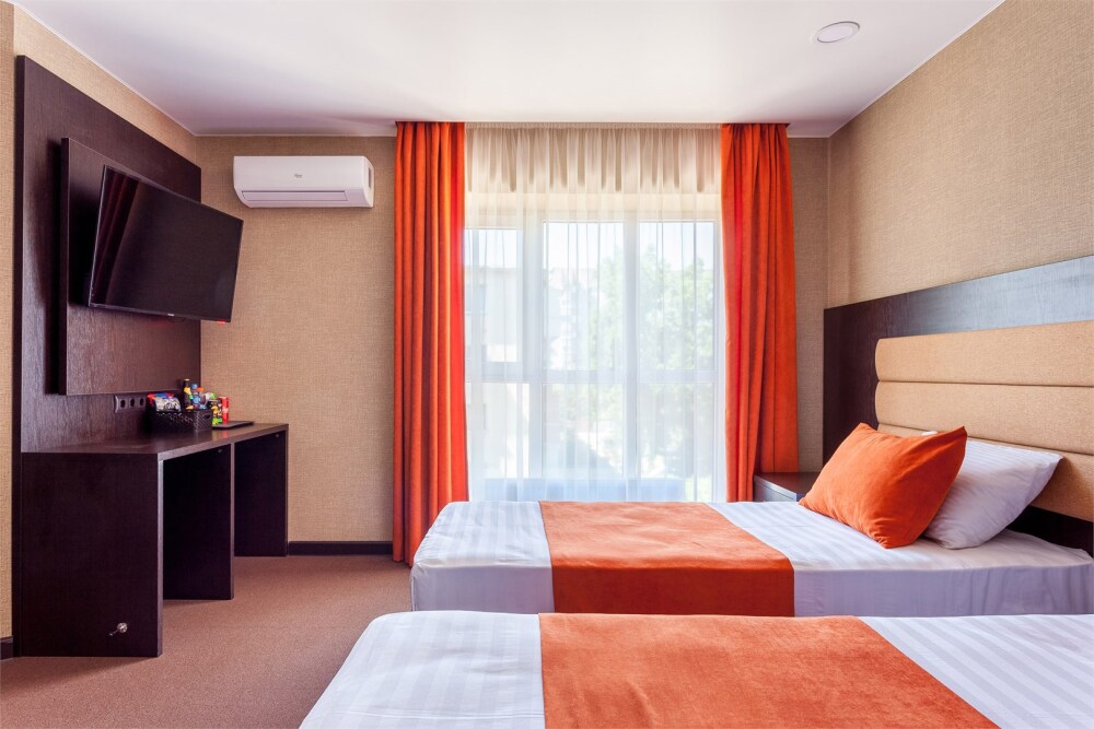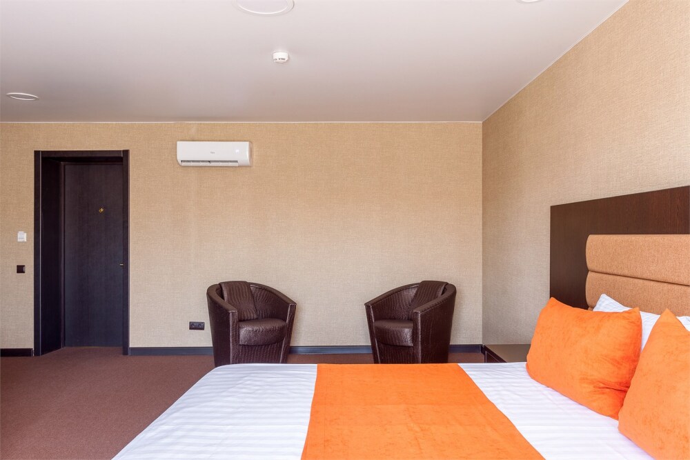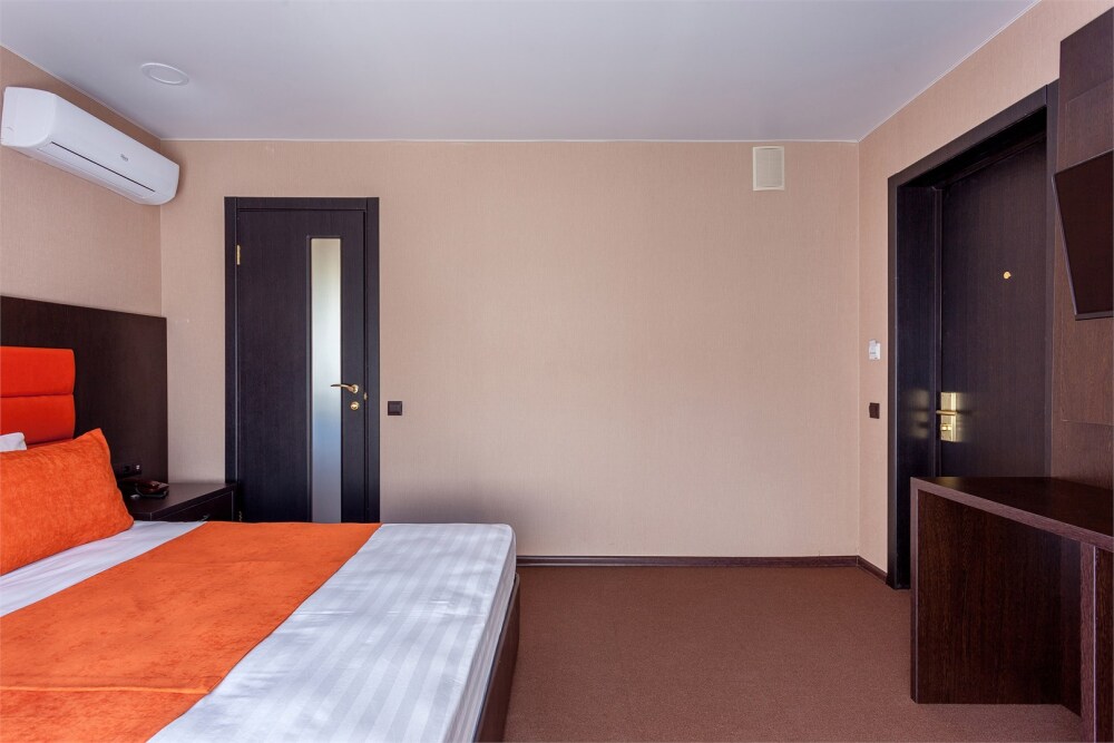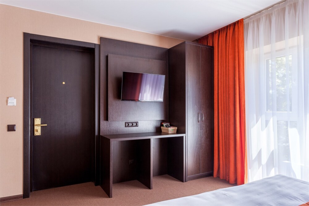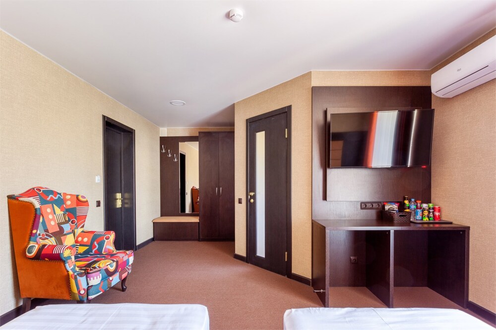В Вашем распоряжении выбор из 57 номеров европейского уровня, различных категорий. «Стандарт» - это пространство и уют, номера с двумя кроватями, если Вы путешествуете с другом или коллегой, «Люкс» - стильные, просторные номера – отличный выбор для молодоженов или влюбленных, а также людей, кто не привык отказывать себе в комфорте. Мы уверены: дешевый отель – не значит плохой, низкие цены в отелях нашей сети – это, прежде всего, уважение к нашим клиентам.
