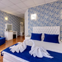 Номерной фонд состоит из 20 номеров класса «бизнес» и 7 «люксов». Каждый номер имеет свое дизайнерское решение. Просторные светлые комнаты, укомплектованные всем необходимым: современной техникой, отличными ванными и удобной, качественной мебелью. К тому же гостей ждет вкусный бесплатный завтрак в уютном небольшом кафе с прекрасной кухней и чудесной атмосферой.