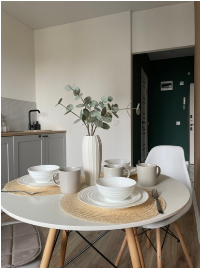- Все необходимые кухонные принадлежности для приготовления еды (посуда, плита, холодильник, микроволновая печь);