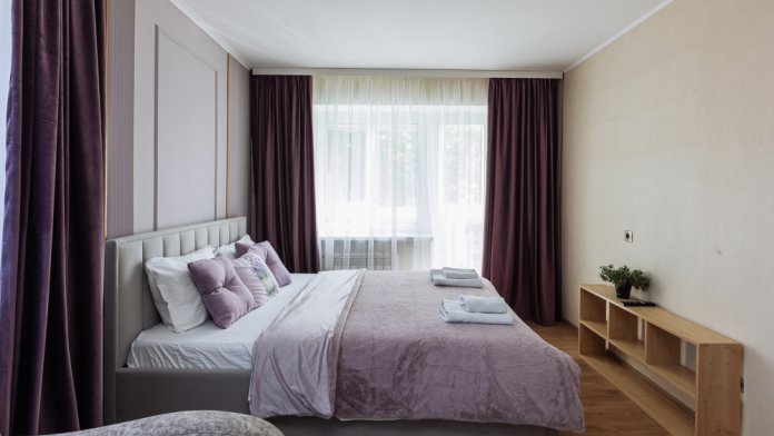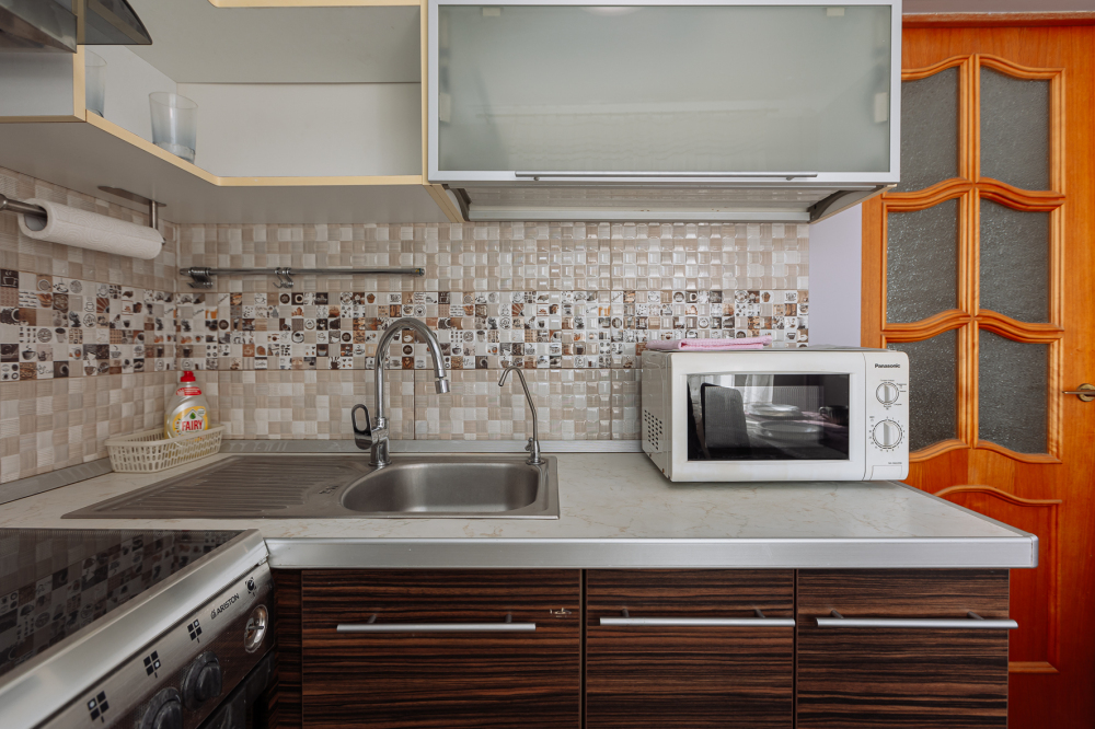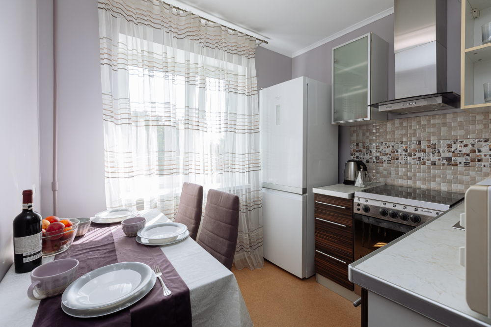 Что есть в квартире: утюг и доска, фен и полотенца, стиральная машина, посуда, балкон для вечерних посиделок, телевизор, Wi-Fi, затемненные шторы для сна, красивый интерьер для глаз и фоточек.
