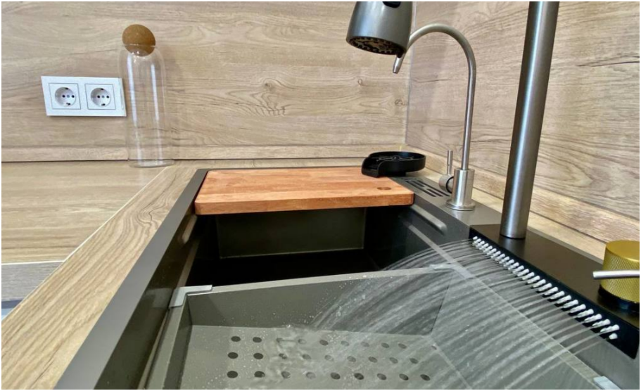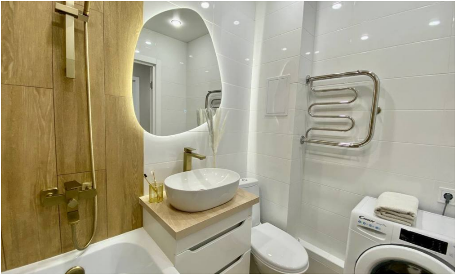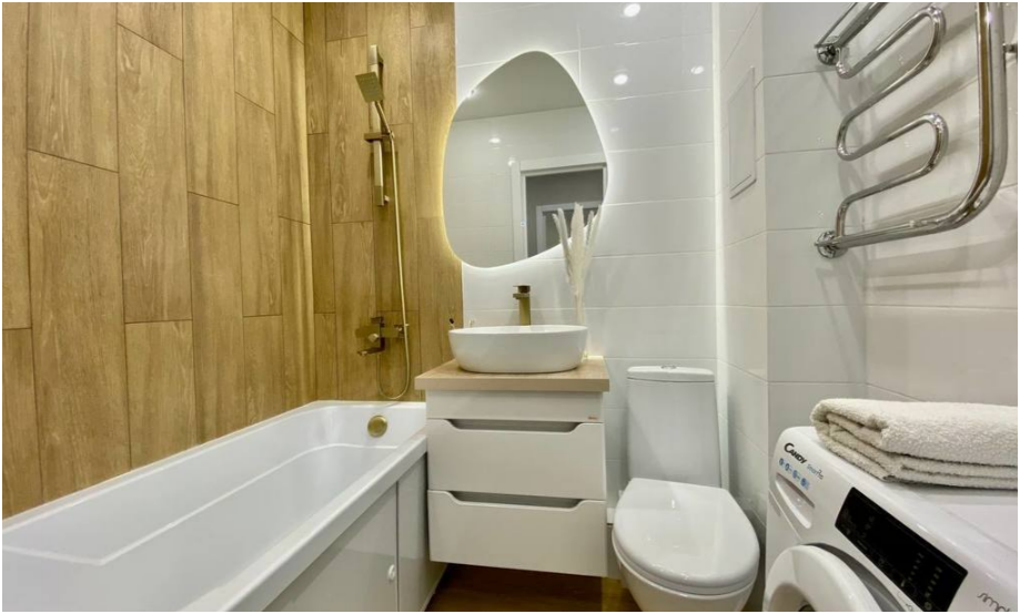 - Все необходимые кухонные принадлежности для комфортного приготовления еды (новая посуда, электрический чайник, плита, холодильник, микроволновая печь).