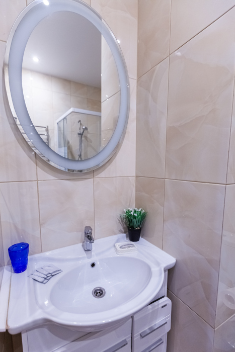 - Удобства: стильный санузел с душевой кабиной и полным набором удобств для Вашего комфорта.