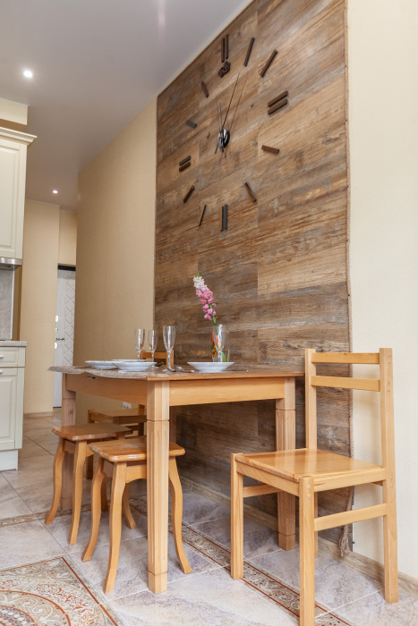 - Спальные места: комфортабельная кровать и два дивана, предлагающие идеальный отдых до 6 гостей.
