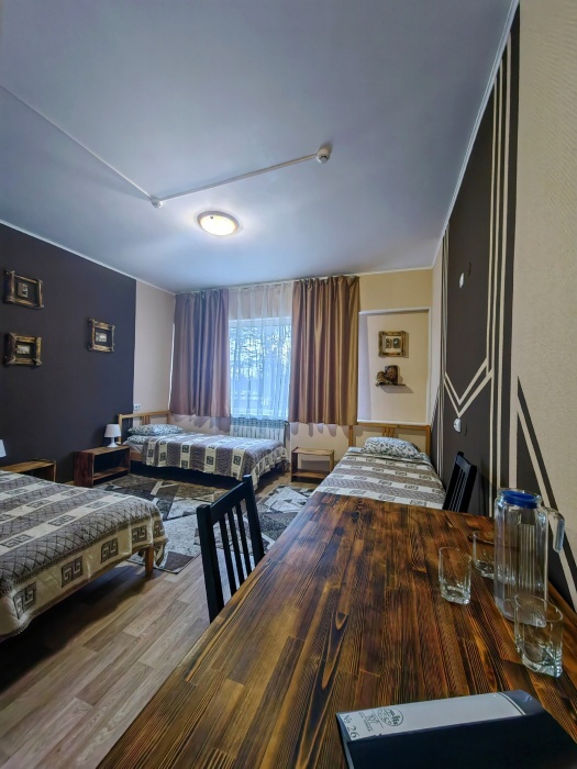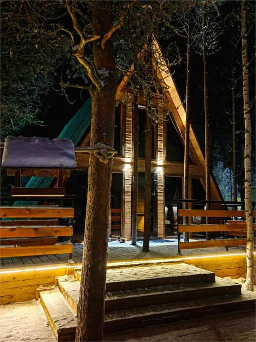 12 номеров гостиничного типа в главном корпусе и новейшие апартаменты (А-фрейм-коттеджи) на территории базы приятно порадуют Вас уютом и комфортом.