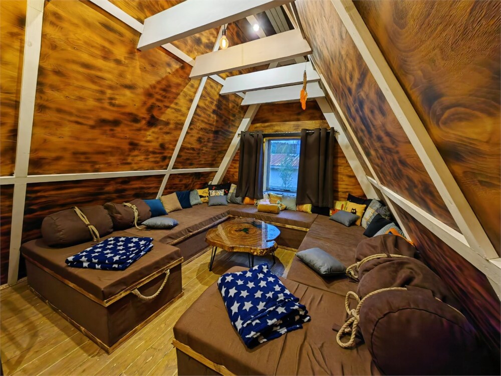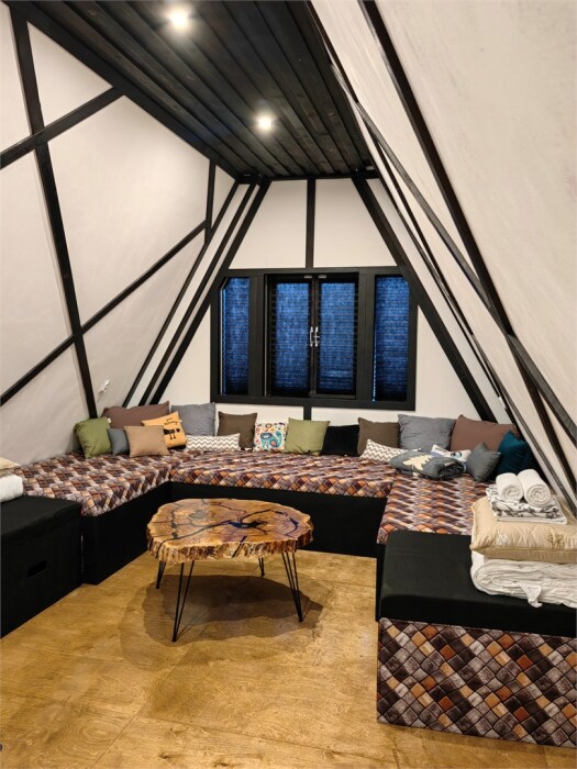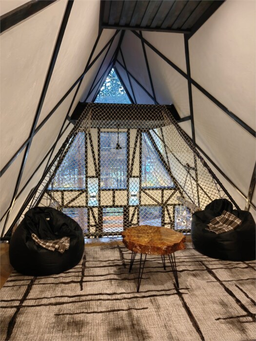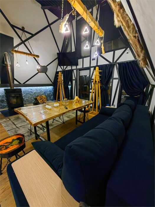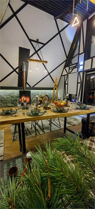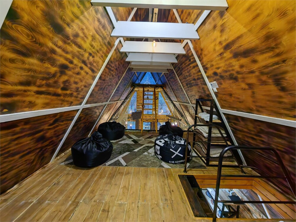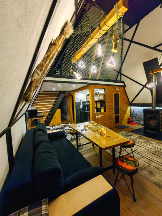 В апартаментах (A-Frame-Коттедж), общей площадью 102 кв. м. с комфортным размещением до 6 человек и максимальным – до 10 чел. в вашем распоряжении: