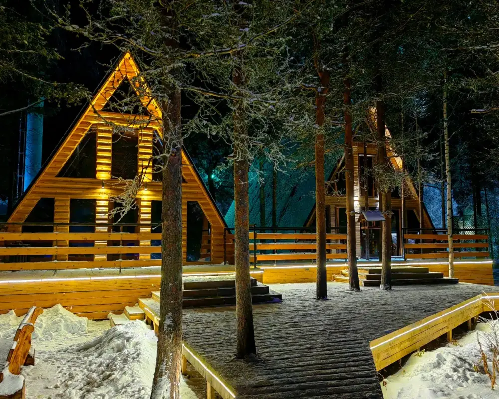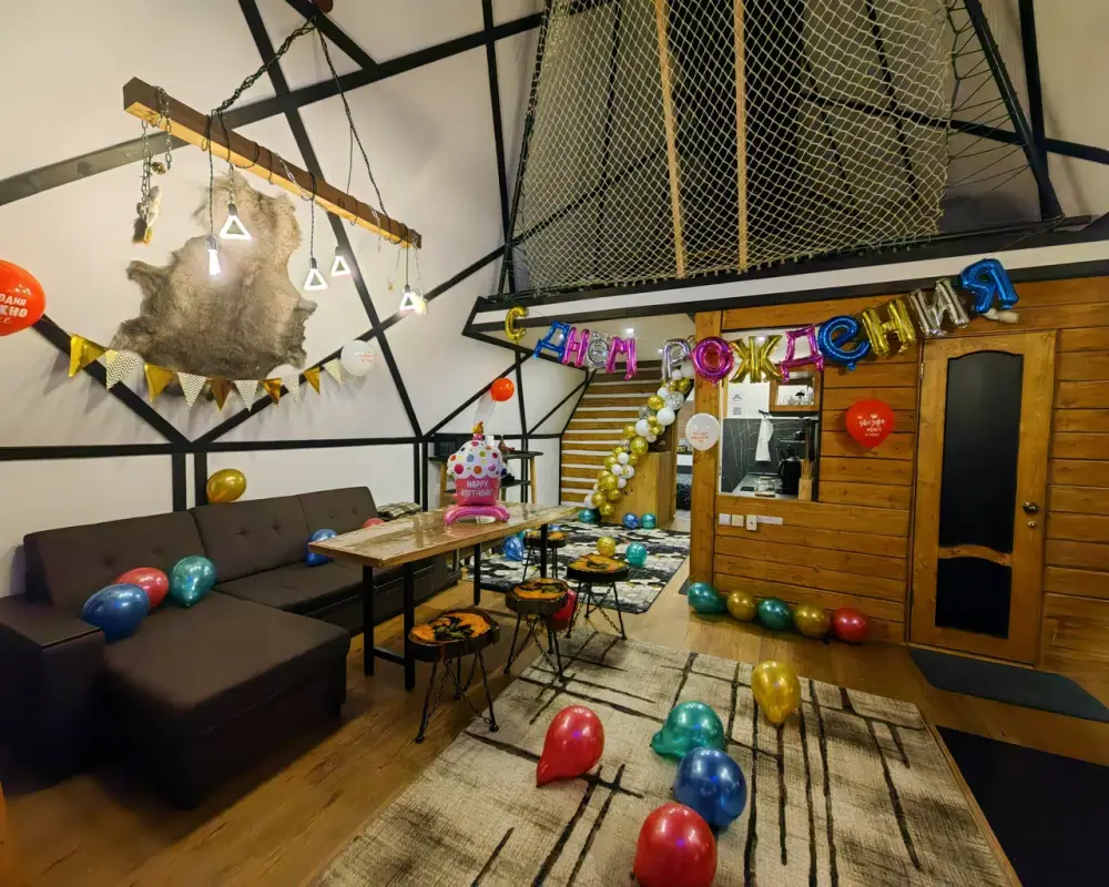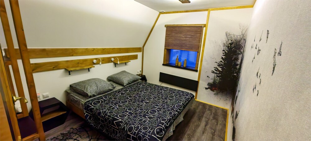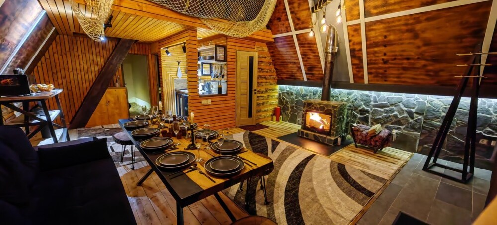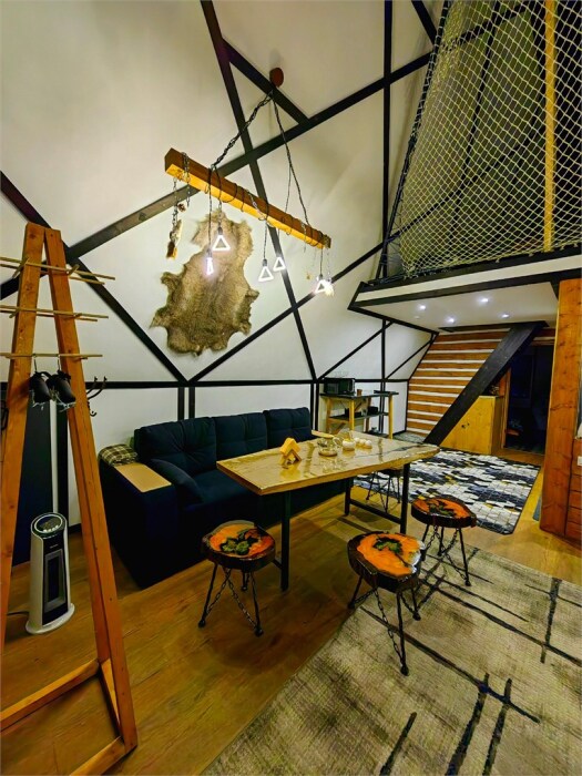 В апартаменте (A-Frame-Коттедж), общей площадью 102 кв. м. с комфортным размещением до 6 человек и максимальным – до 10 чел. в вашем распоряжении: