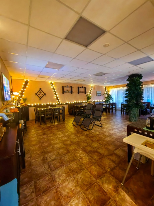 Банкетный зал, мангальная и кухонная зона общего пользования, со всей необходимой техникой и посудой для приготовления и сервировки стола.