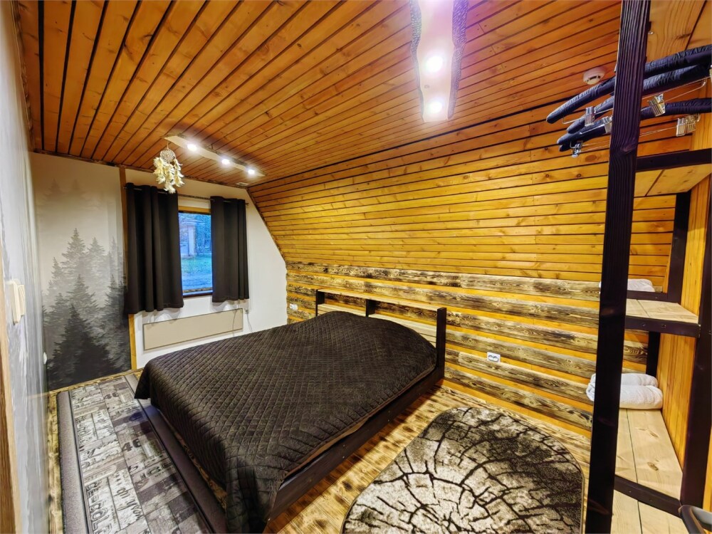 Три односпальные кровати, прикроватные тумбочки, туалет, душ. Банкетный зал, мангальная и кухонная зона общего пользования, со всей необходимой техникой и посудой для приготовления и сервировки стола.