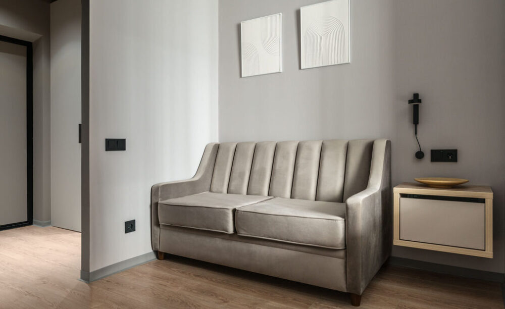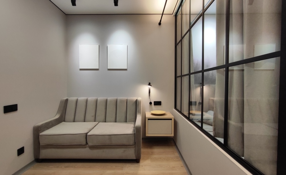 - диван-кровать в гостиной зоне;