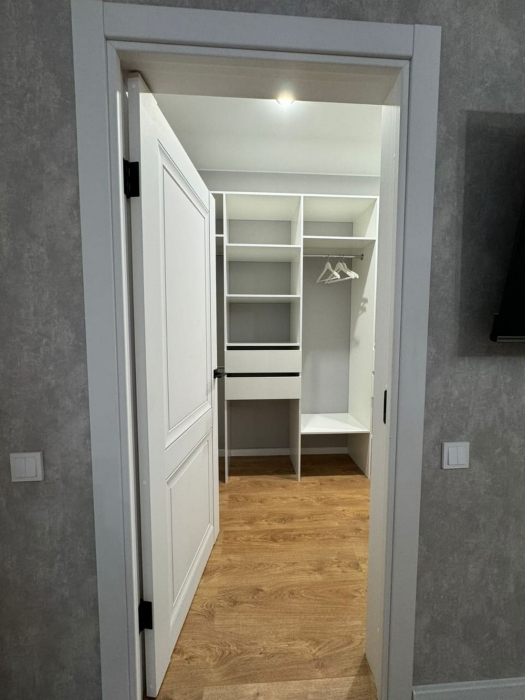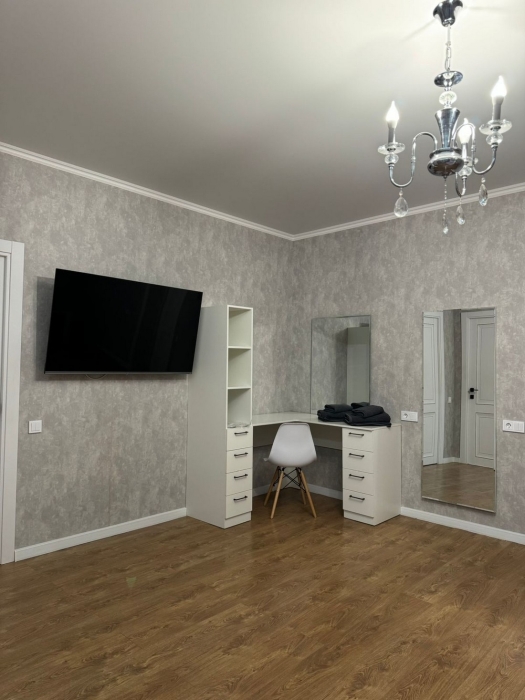Имеется телевизор, кондиционер, фен, чайник, отопление, шкаф, вешалка, журнальный столик, стулья, антимоскитная сетка и плотные шторы.