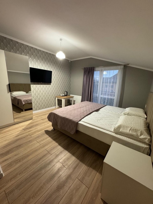 К услугам гостей комфортабельные номера различных категорий с выходом на балкон (стандарт, эконом, люкс, полулюкс, номера для некурящих), которые оснащены всеми современными удобствами и идеально подходят как для деловых, так и для туристических поездок. Светлые номера отеля оформлены в пастельных тонах и классическом стиле. Удобства в номерах: телевизор, шкаф или гардеробная, журнальный столик, рабочий столик, детская кроватка (при необходимости), фен, электрический чайник с набором для чаепития, одноразовые гигиенические принадлежности (тапочки, зубная щетка и паста, мыло, шампунь, гель для душа, расческа, ушные палочки, ватные диски).