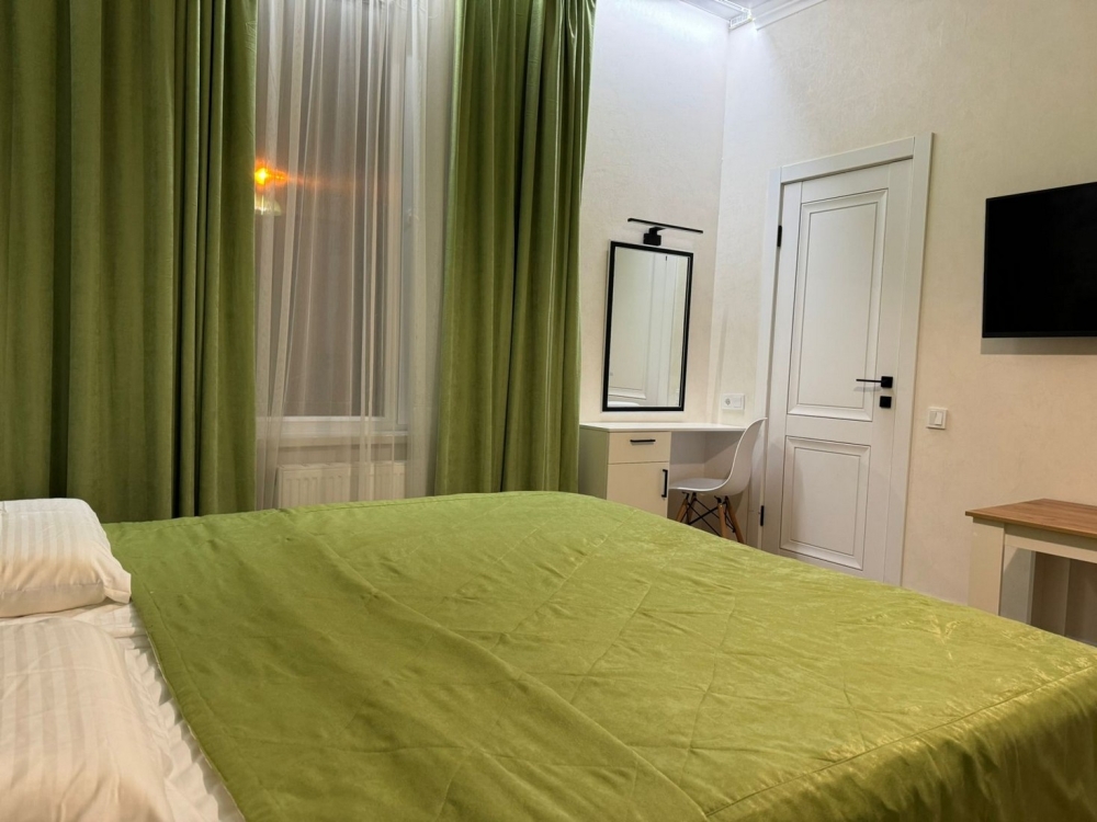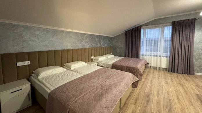 В номере: 1-двуспальная кровать или 2-односпальных, 1-кресло-кровать.