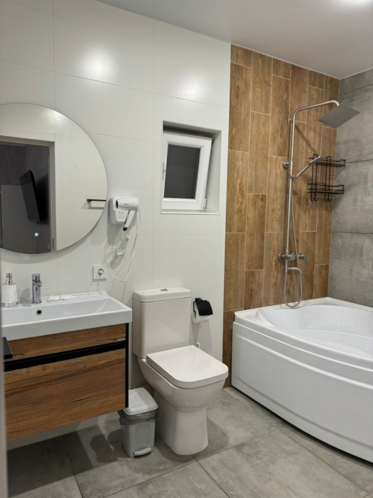 Индивидуальная ванная комната: ванна, раковина, туалет.