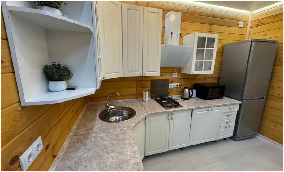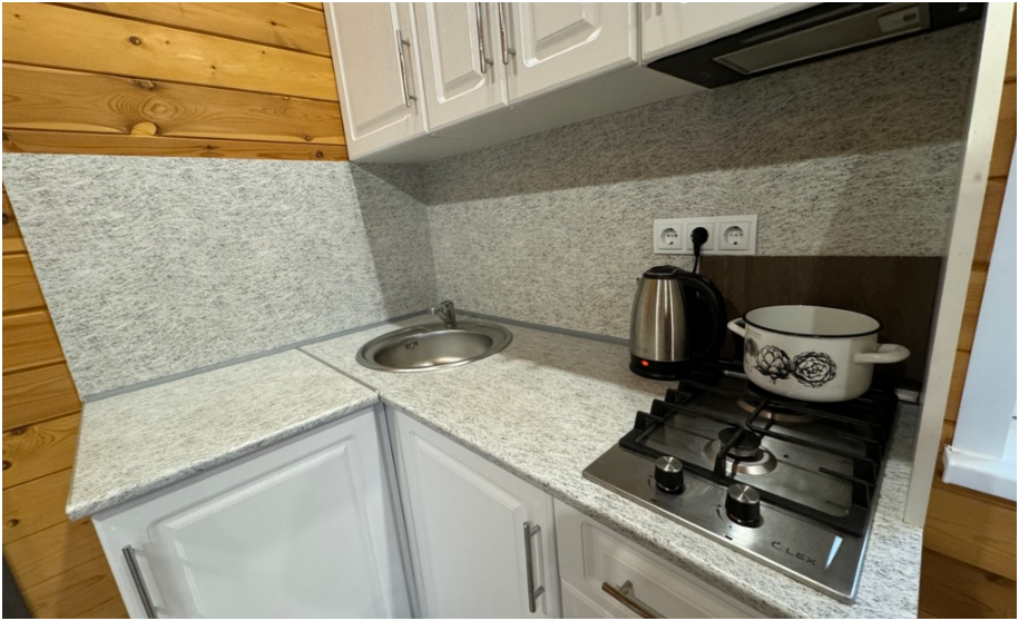 В домиках для Вас: собственная терраса с мебелью для отдыха на улице, двуспальная кровать ортопедический матрас, свежее постельное белье, двухместный раскладной диван. Кухня со всем необходимым для готовки: большой холодильник, духовой шкаф, посудомоечная машина, газовая плита, микроволновая печь , тостер, чайник, тостер, сковороды и кастрюли, сервировочная посуда и столовые приборы. Душевая, туалет, раковина, средства гигиены и свежие полотенца