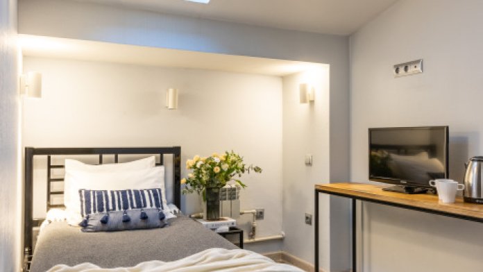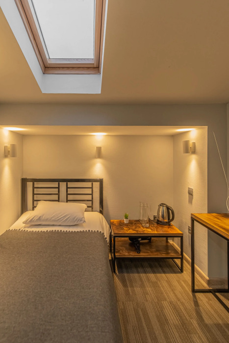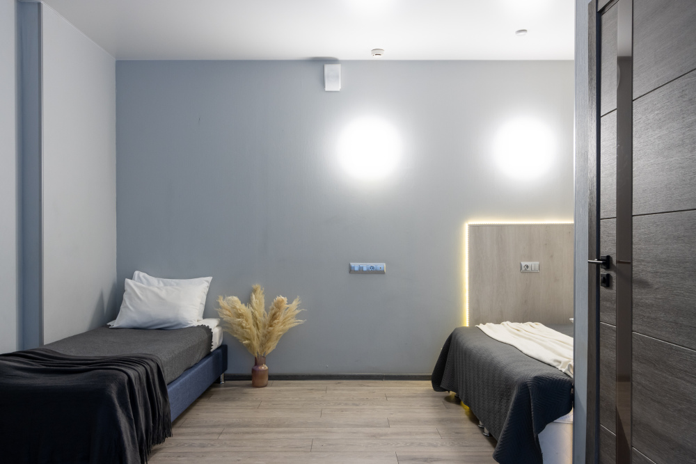 Односпальная кровать и кровать King-size или две односпальные кровати.