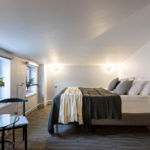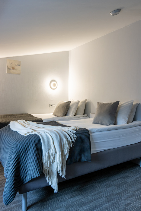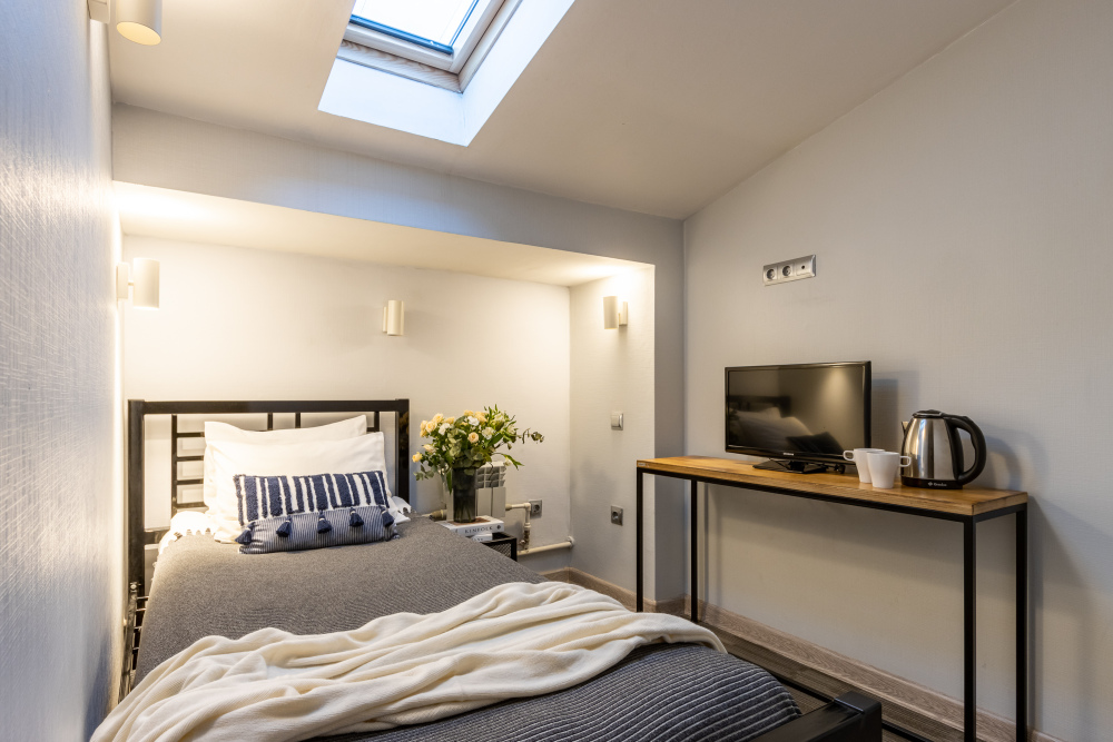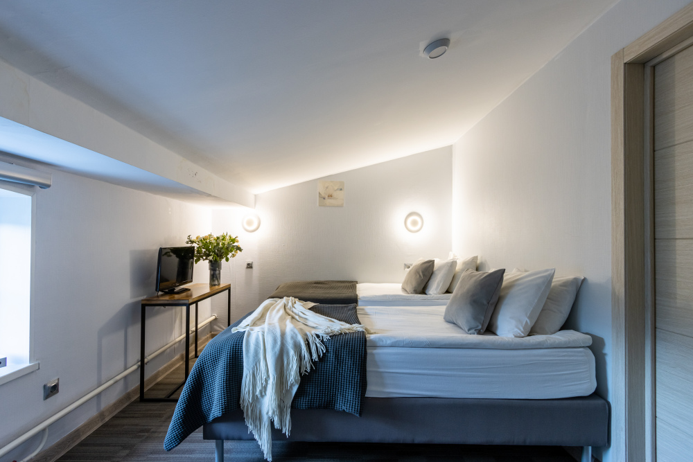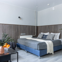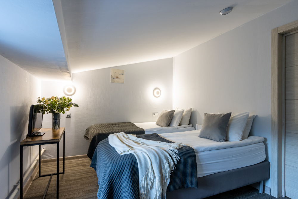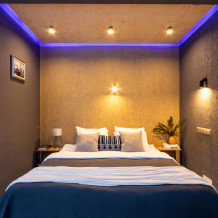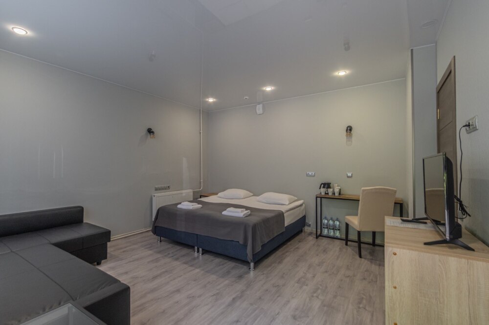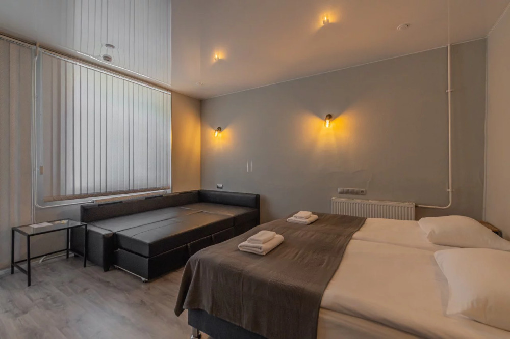 - Дополнительное спальное место - раскладная кровать, предоставляется по запросу и при наличии возможности за дополнительную плату: с 01.04 по 30.09 и с 29.12 по 08.01 размер доплаты составляет 1500 руб. в сутки, в остальные даты дополнительная кровать предоставляется бесплатно.