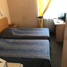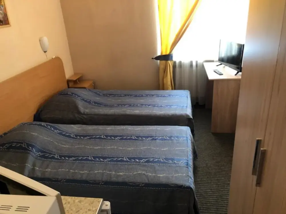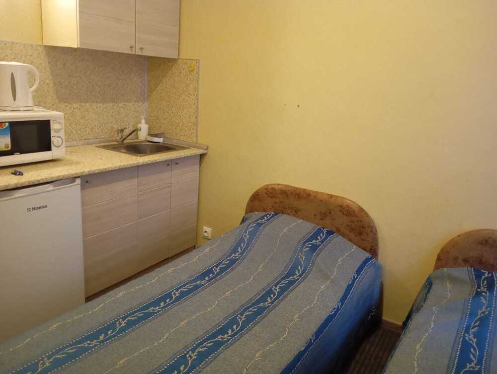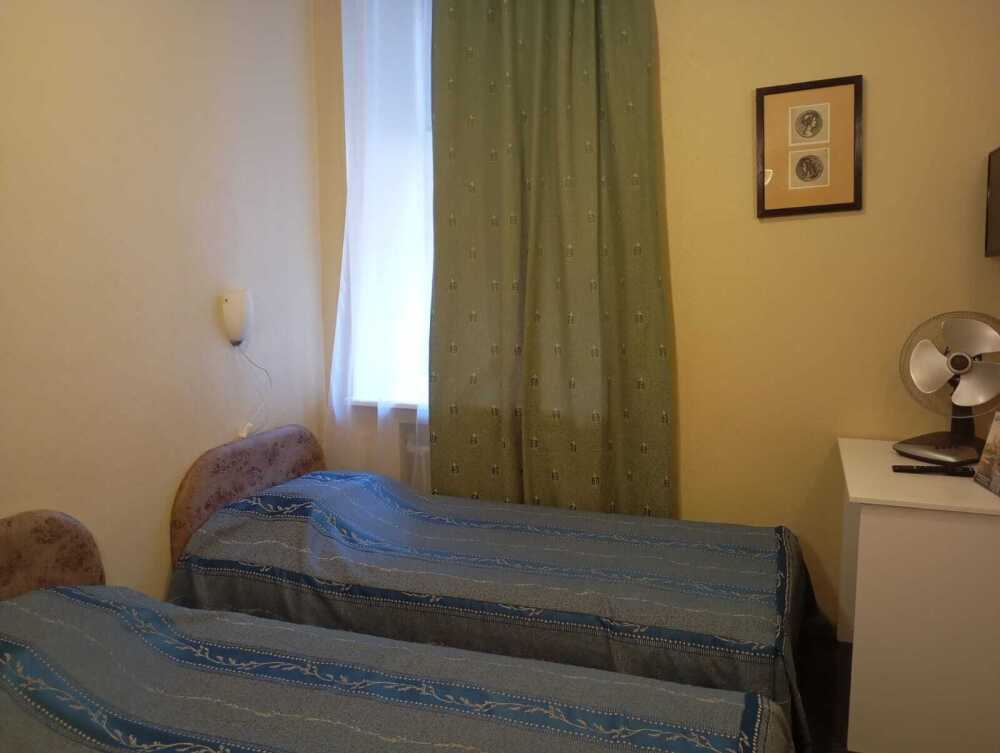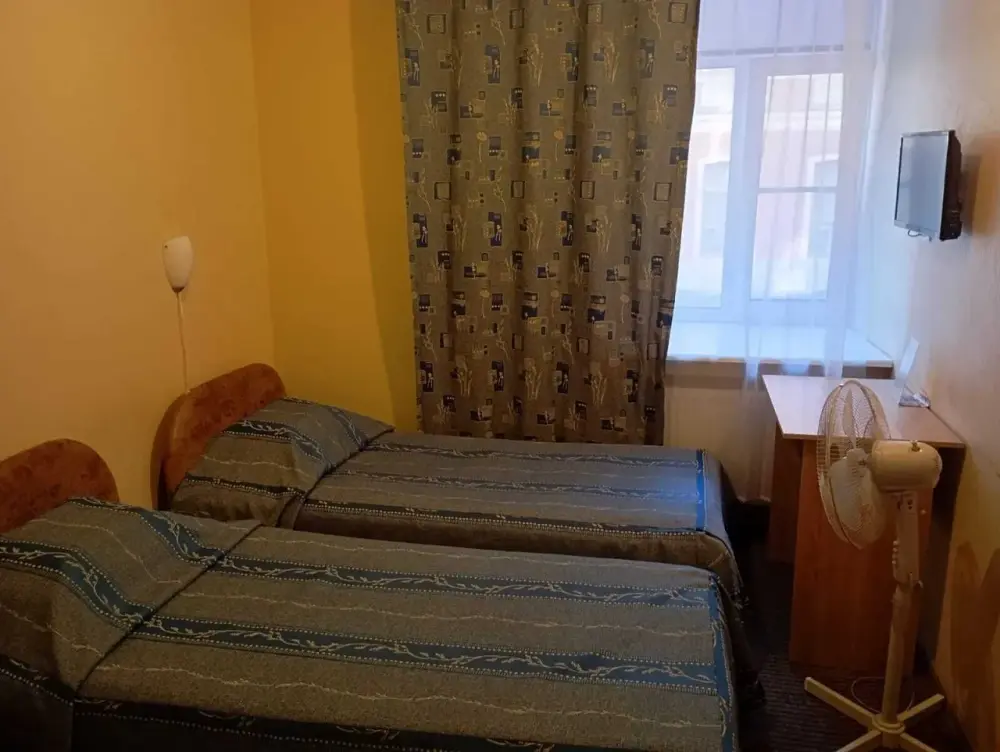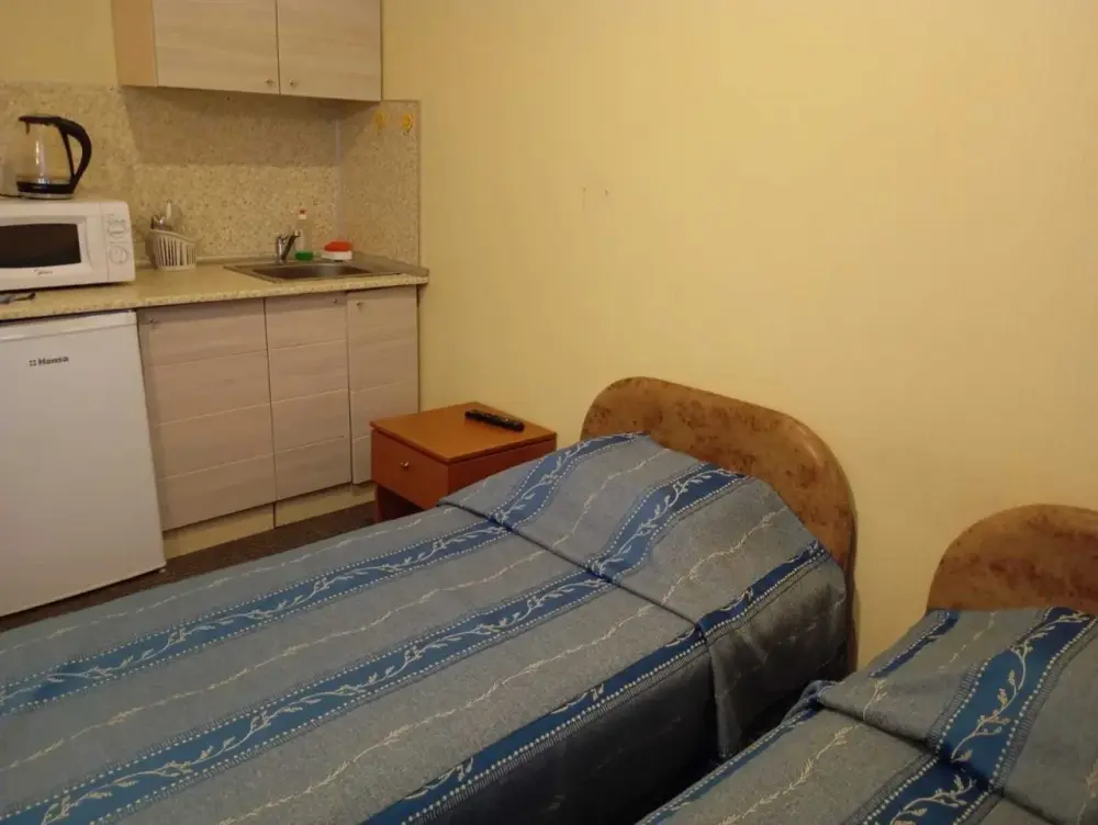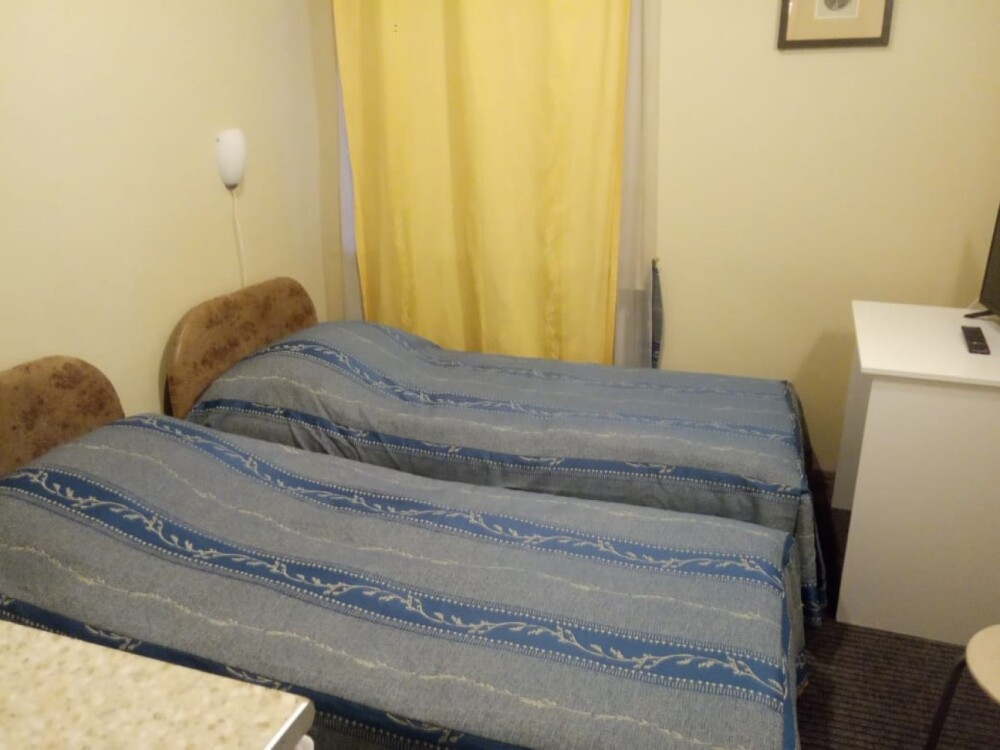 В номере 2 раздельные кровати, душ, туалет, TV, кухня. В ванной комнате имеются разовые туалетные принадлежности. Окна выходят на городскую улицу. Максимум для проживания - 2 Гостя.