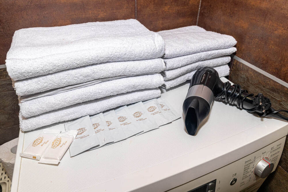Все фото соответствуют. В апартаментах: кухонные комплекты, гигиенические индивидуальные наборы, постельные принадлежности, комплект по уходу за одеждой, аксессуары по уходу за обувью.