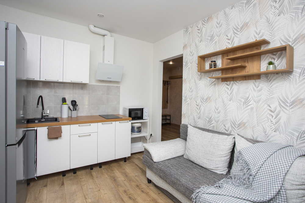 В квартире есть: застекленная лоджия, фен, телевизор с кабельными каналами и смарт-тв. Кухня оснащена: холодильником, плитой, электрическим чайником, кофеваркой, микроволновой печью, чай, кофе, сахар, соль всегда в наличии.