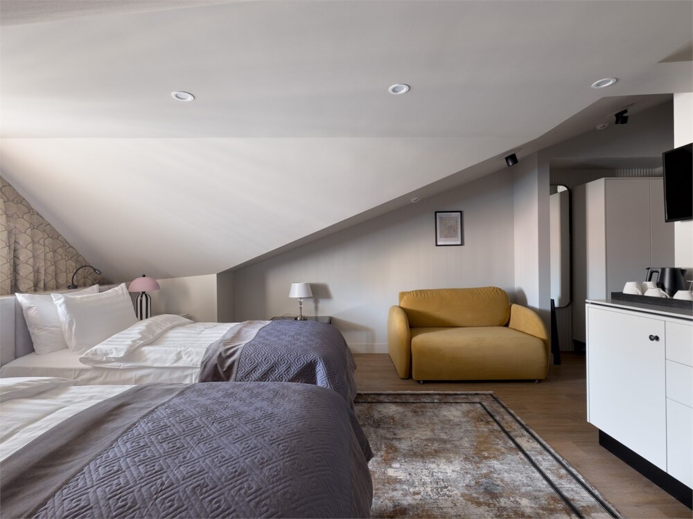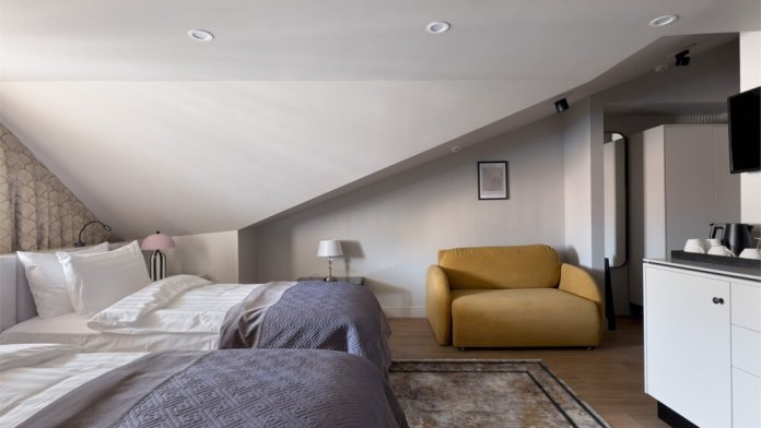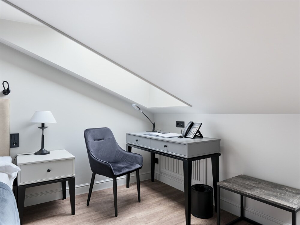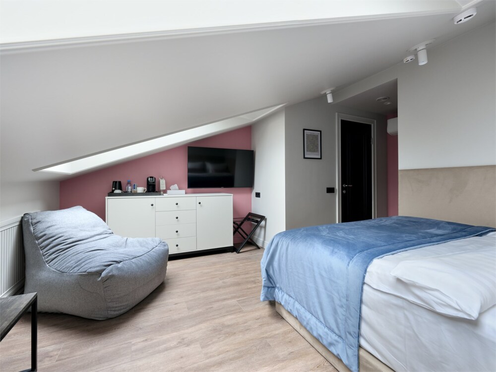 Мансардный номер «Аттик» категории Стандарт предлагает гостям ощутить исключительный комфорт в элегантной атмосфере роскоши.