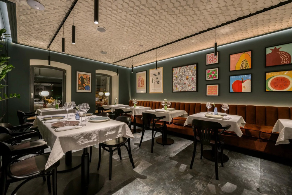 На первом этаже отеля расположен гастрономический ресторан Cette с двумя залами: первый с барной стойкой и столиками у окон и зал с открытой кухней, где можно наблюдать за творчеством поваров.