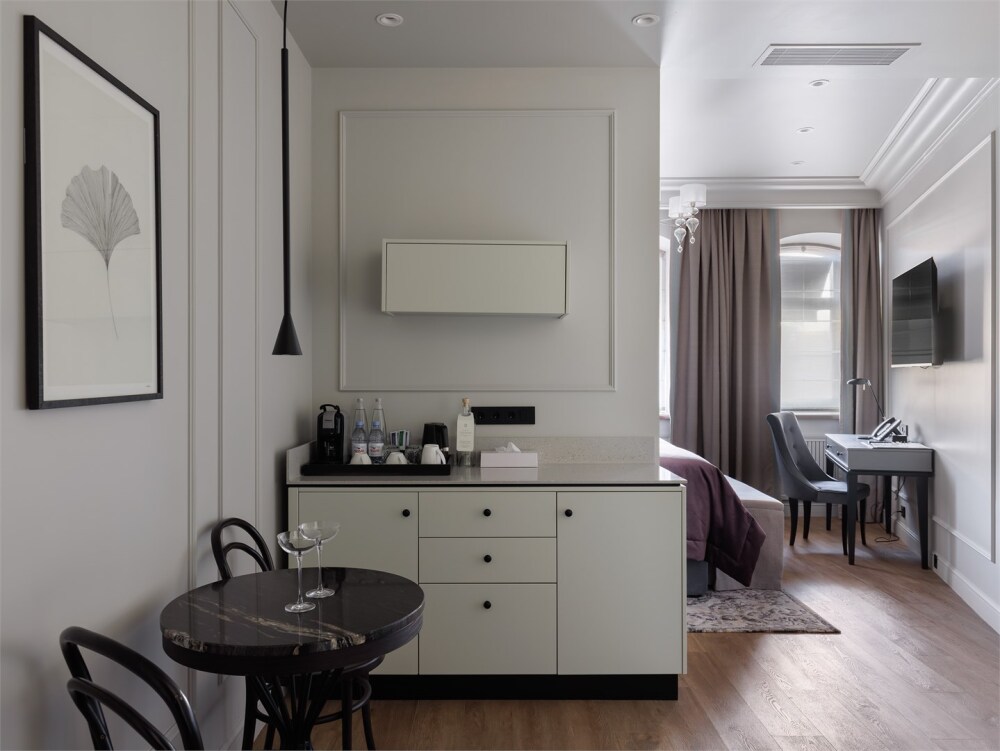 Отель по-петербургски виртуозно вписывает современное искусство в расслабленный отпуск. Абсолютная тишина и вдохновляющая красота, создающие атмосферу идеального дома, в который хочется возвращаться.