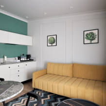 В качестве дополнительного спального места в гостиной зоне можно установить еврораскладушку или кроватку-манеж.