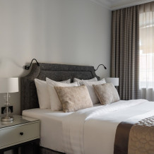Нашим гостям мы предлагаем 25 изысканных номеров 13-ти различных категорий. В вашем распоряжении для деловых переговоров или встреч с друзьями - лобби отеля, украшенное коллекциями современного искусств.