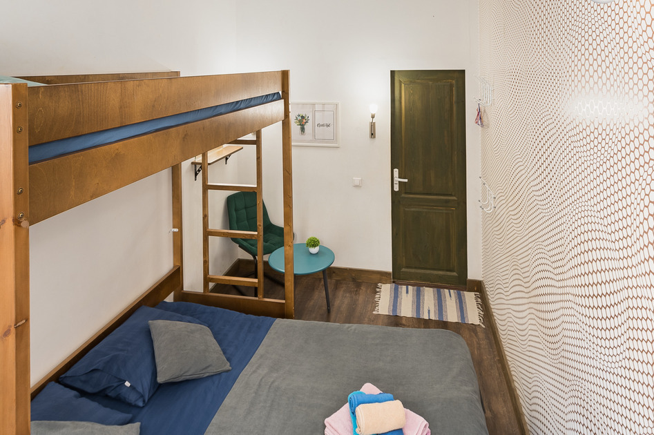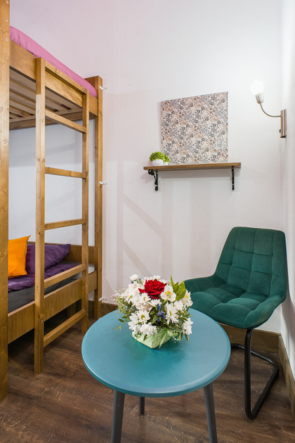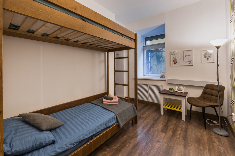 Номер прекрасно вмещает в себя 3 или 4 человека. На 1 этаже, окна во двор, всегда тишина и покой. Двор уютный, правильной формы с палисадником. Удобства на этаже. Два санузла, два душа, все отдельно. Безукоризненная чистота в общественных зонах: на кухне, в туалете и в душевой.