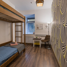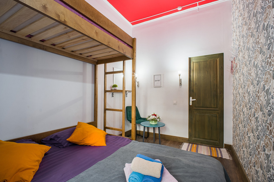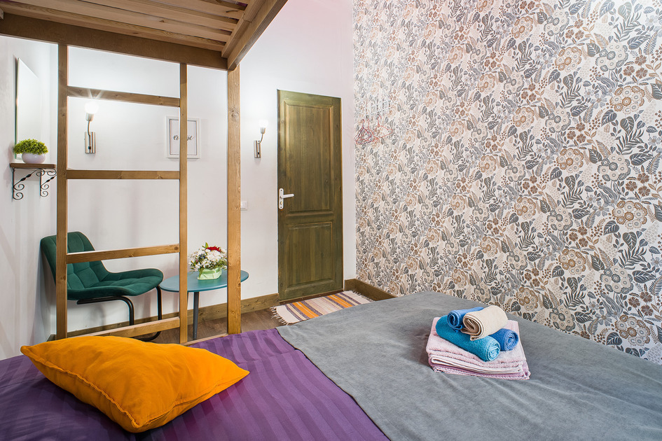 Номер прекрасно вмещает в себя 2 или 3 человека. На 1 этаже, окна во двор, всегда тишина и покой. Двор уютный, правильной формы с палисадником. Удобства на этаже. Два санузла, два душа, все отдельно. Безукоризненная чистота в общественных зонах: на кухне, в туалете и в душевой.