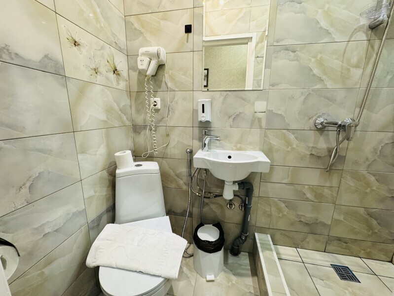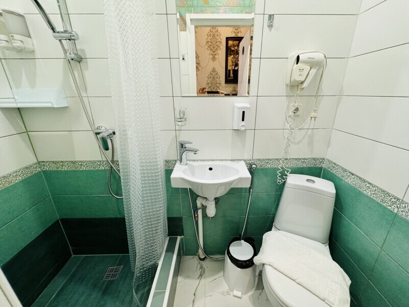 Номер 15 кв. м. с телевизором с плоским экраном и кабельными каналами. В собственной ванной комнате с душем предоставляются бесплатные туалетно-косметические принадлежности и фен.