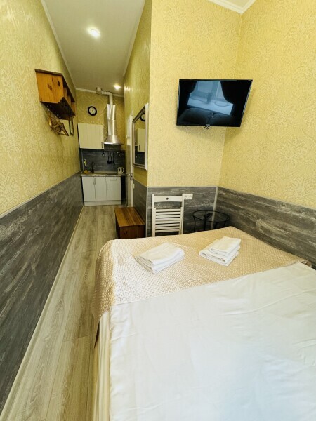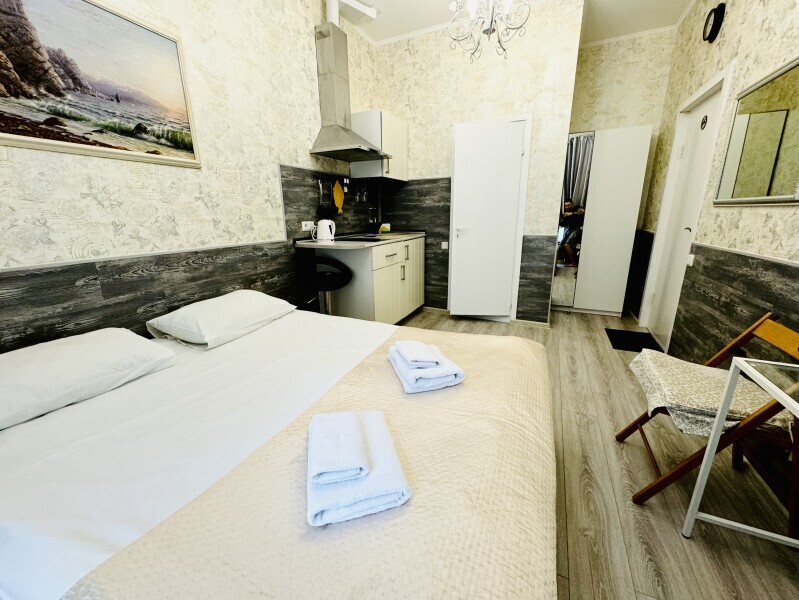 Номер-студио 17 кв. м. с мини-кухней с плитой, электрическим чайником и тостером. В числе удобств телевизор с плоским экраном и кабельными каналами. В собственной ванной комнате с душем предоставляются бесплатные туалетно-косметические принадлежности и фен.