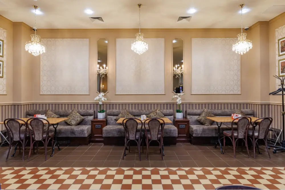 На 1 этаже расположен ресторан, неповторимая атмосфера которого порадует изысканной кухней, современным интерьером и лёгким джазовым музыкальным сопровождением, способствующим приятному отдыху. Отель предлагает: бесплатный Wi-Fi, паркинг, камеру хранения, трансфер, экскурсии, современно оборудованных конференц-зала вместимостью от 14 до 170 чел, услуги бизнес-центра, ресторан La Ronde, Венское кафе, фитнес-центр, салон красоты – все для комфортной работы и отдыха. Для детей возможно арендовать приставку PlayStation 5 за дополнительную оплату.