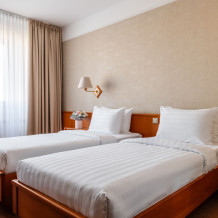 В номере: ж/к телевизор, мини-бар, телефон, сейф, халат, комплект полотенец, тапочки. Смена постельного белья каждый день.