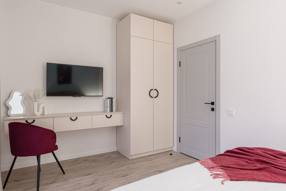 - Все необходимые кухонные принадлежности для приготовления еды (посуда, электрический чайник, плита, холодильник, микроволновая печь);