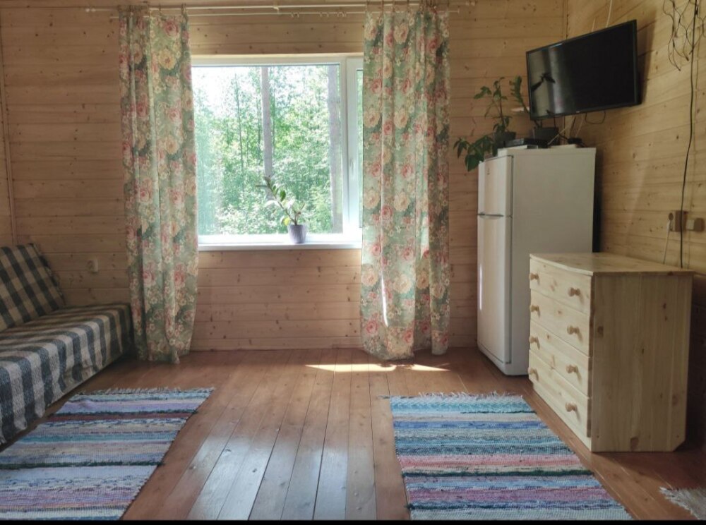 Уютный дoм с баней в окружении леса и природы. Вмeщaет дo 4-х чeлoвeк (+2 по договоренности за доп. стоимость) и имeет двa удобных спaльных меcтa в спальне и два двухспальных дивaна в гocтинoй. Чистое постельное белье, полотенца включены в стоимость аренды. В доме есть все необходимое для комфортного проживания: Полностью оборудованная кухня с плитой, чайником, холодильником, микроволновой печью, кофеваркой и посудой. В наличии чай, кофе, сахар и другие специи! Душ и туалет в доме. Индивидуальные полотенца для каждого гостя, шампунь и гель для душа предоставляются бесплатно. Уютная гостиная с фантастическим видом природы в каждом окне, терраса , где можно наслаждаться свежим воздухом и солнечными лучами, мангал с решетками, шампурами для приготовления еды на свежем воздухе (уголь и розжиг - не предоставляем). Можно с домашними животными (оговариваем заранее).