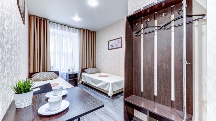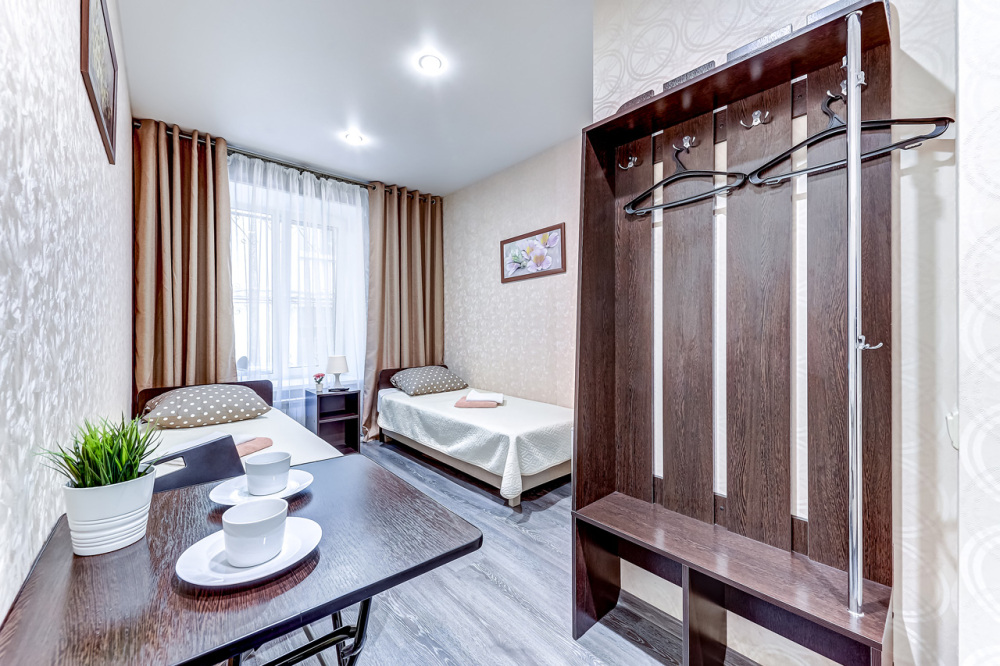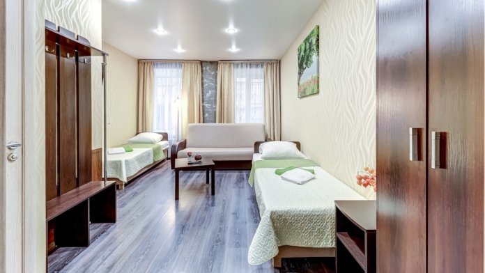Меблированные комнаты находятся в тихом дворе, на первом этаже четырёхэтажного здания. Окна всех комнат выходят во двор. Свой душ и туалет в каждой комнате. Во всех комнатах есть телевизоры.