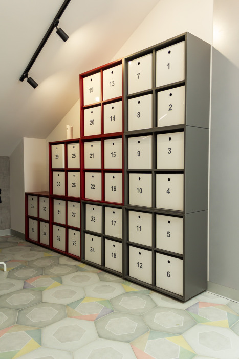 - На 1 этаже установлен вендинговый аппарат, рядом с lounge-зоной установлена кофе-машина. В первом вендоре - снеки, шоколад, соки и напитки, роботизированный разогрев вкусных полуфабрикатов шоковой заморозки: первые и вторые блюда, горячие закуски. Зона мини-кухни оборудована холодильником, чайником, тостером и микроволновкой, посудой и приборами, чтобы Вы могли пользоваться своими продуктами, а также есть индивидуальные ячейки с ключом для хранения нескоропортящихся продуктов.