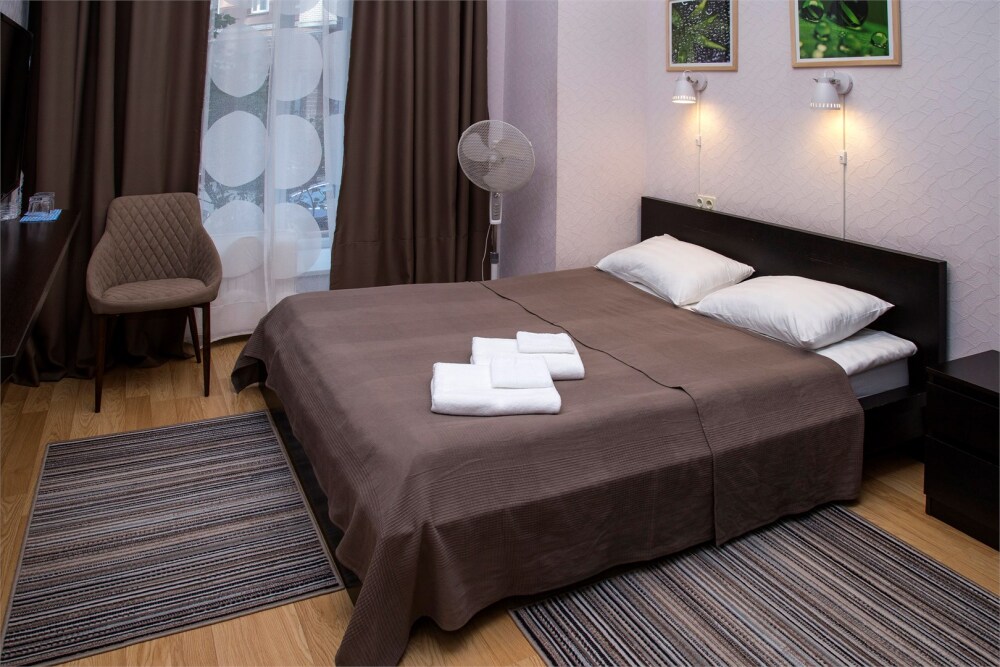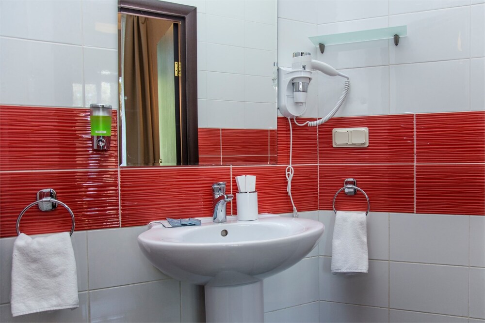Все наши номера оборудованы собственным санузлом, в котором есть душ, унитаз раковина, фен, мыло, гель для душа и шампунь в диспенсерах. В каждом номере плоский телевизор, платяной шкаф, удобная кровать стул, чайник, бокалы и стаканы, чайный набор (чай черный, чай зеленый, сахар). Гостям предлагается доступ к интернету по Wi-Fi, а также проводной интернет. Гостям выдается по 3 полотенца на каждого (банное, ножное, лицевое), Номера комплектуются расходниками: шампунь, мыло, гель для душа, зубные наборы, тапочки. Наше постельное бельё из страйп-сатина. Ежедневно проводится текущая уборка номеров и, по необходимости, замена полотенец.