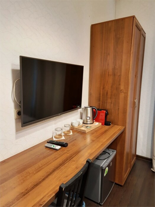 ЖК телевизор 42», чайная станция, холодильник, настольная лампа, кофемашина Nespresso, электронный сейф, Wi-Fi.