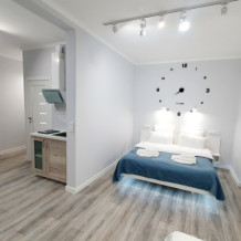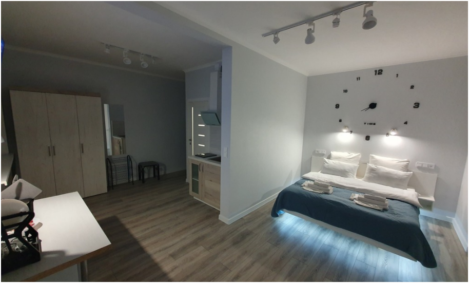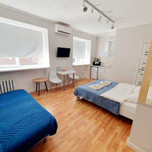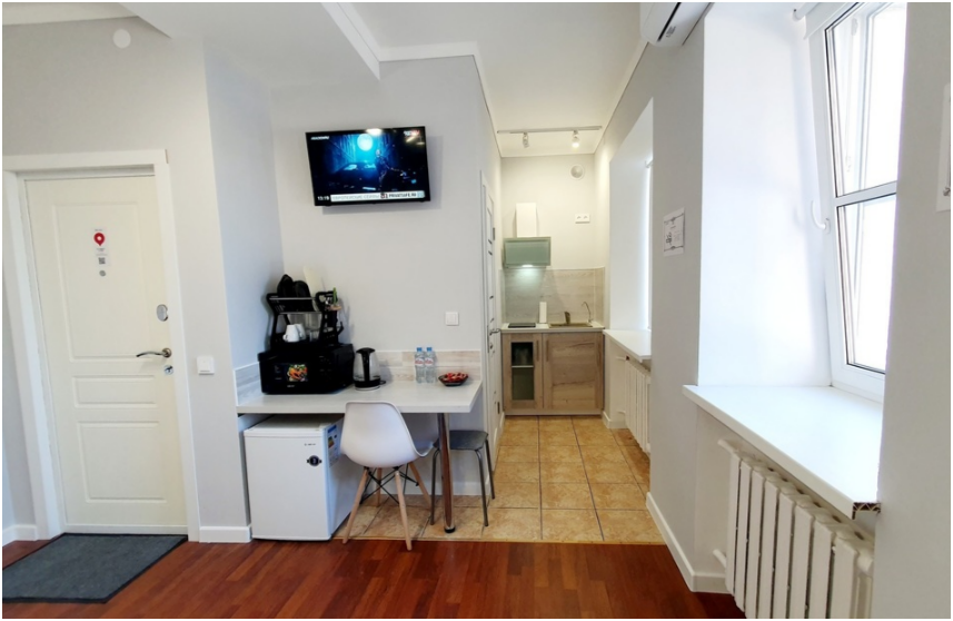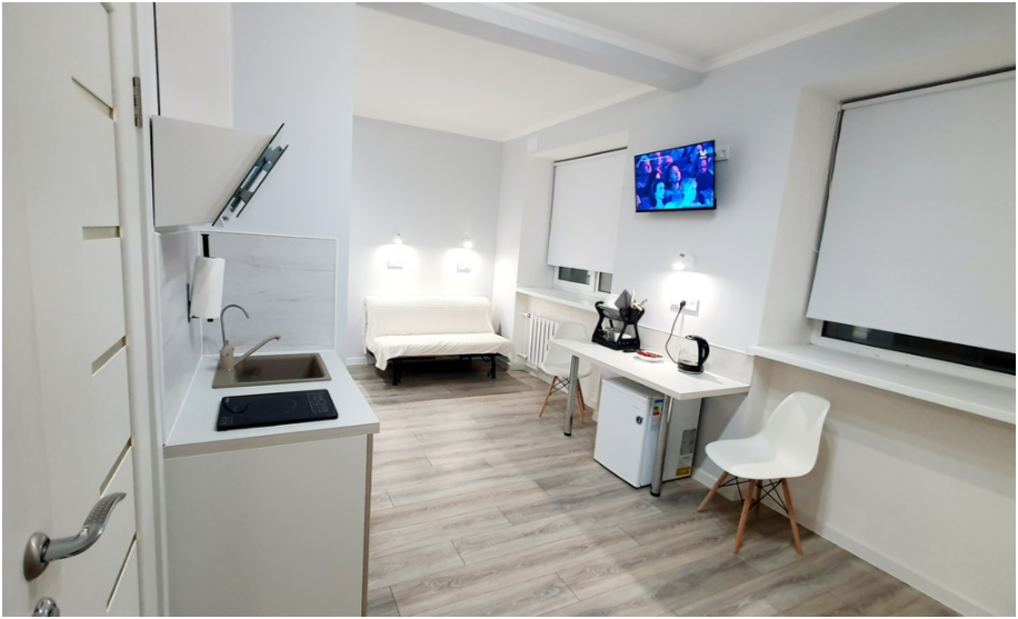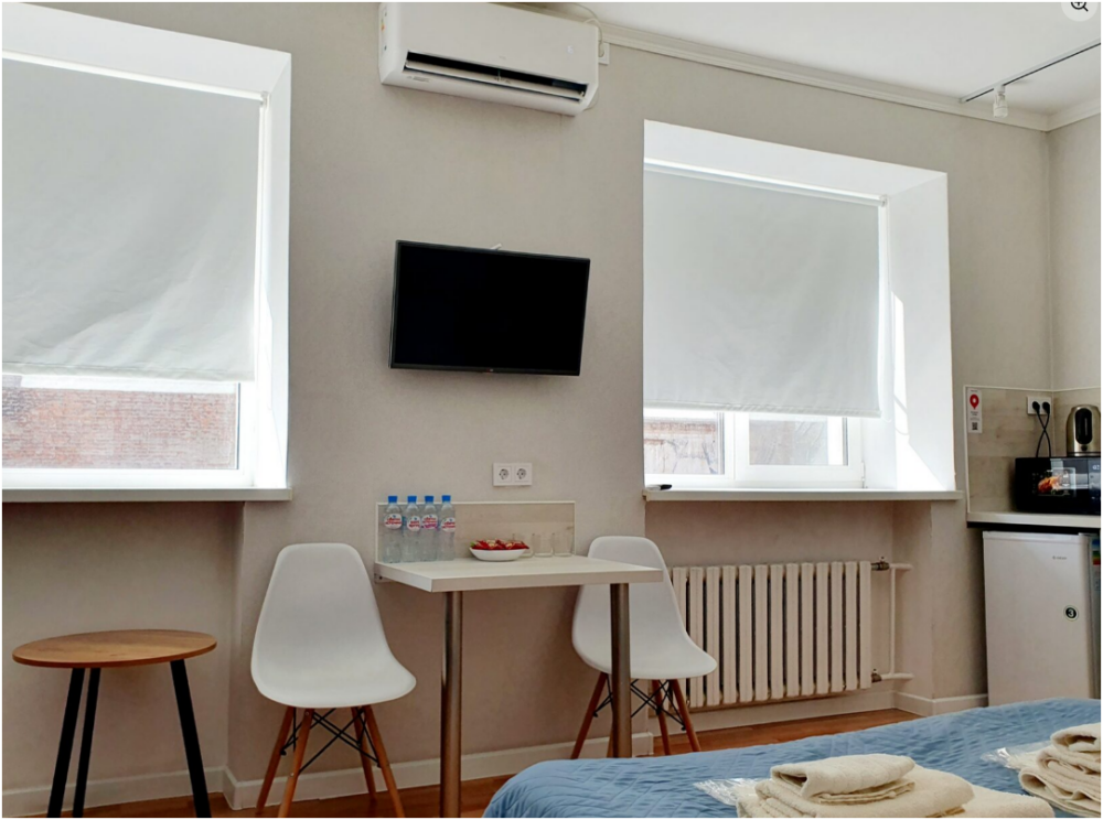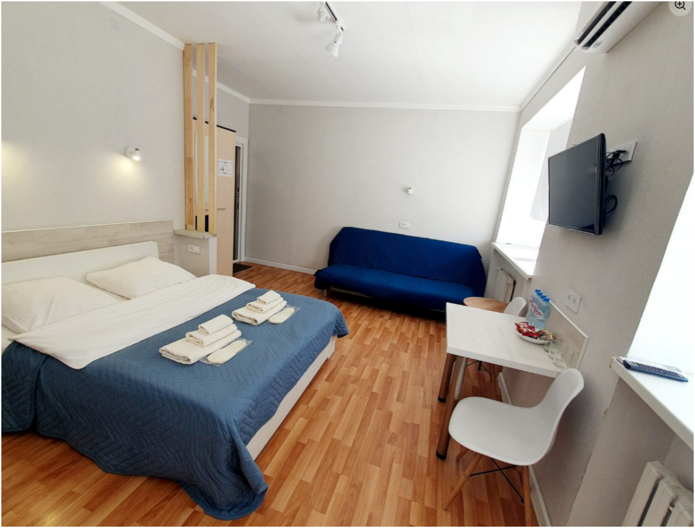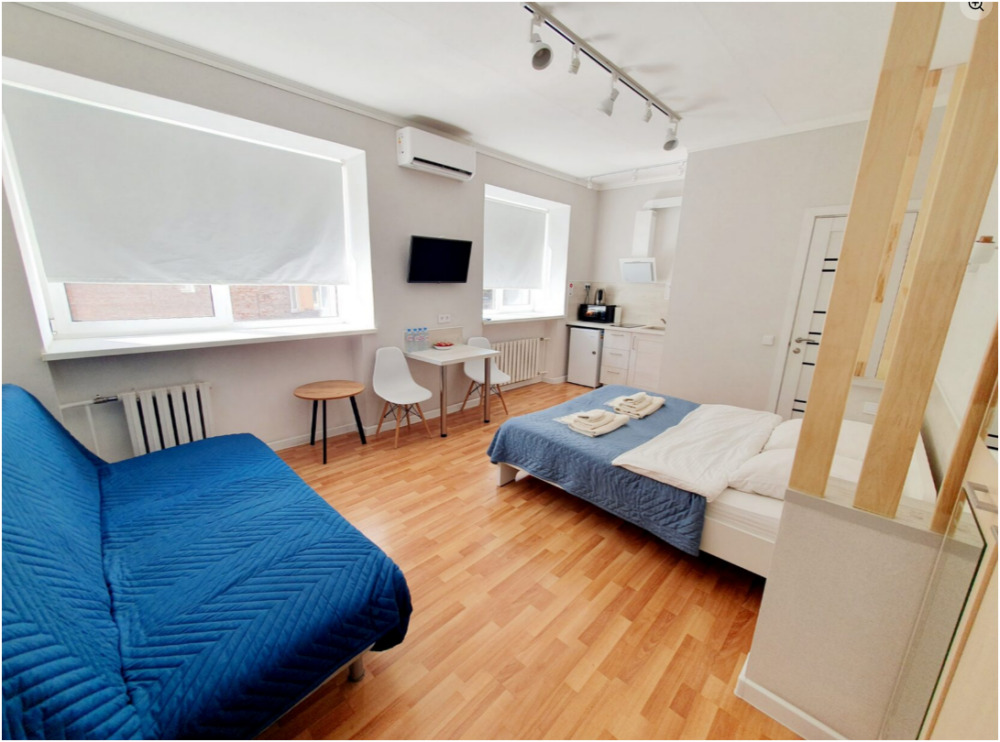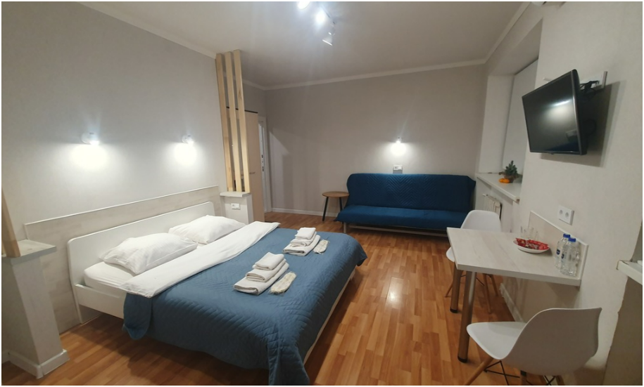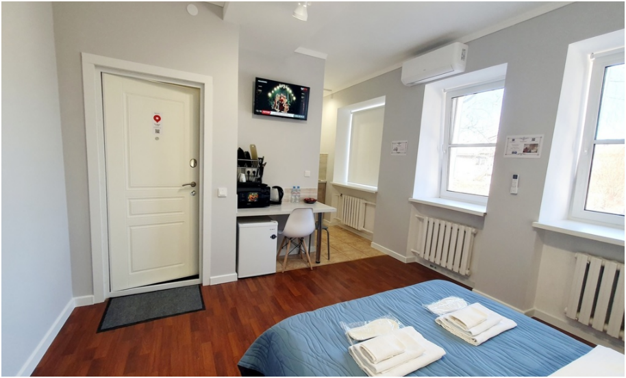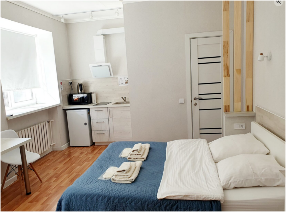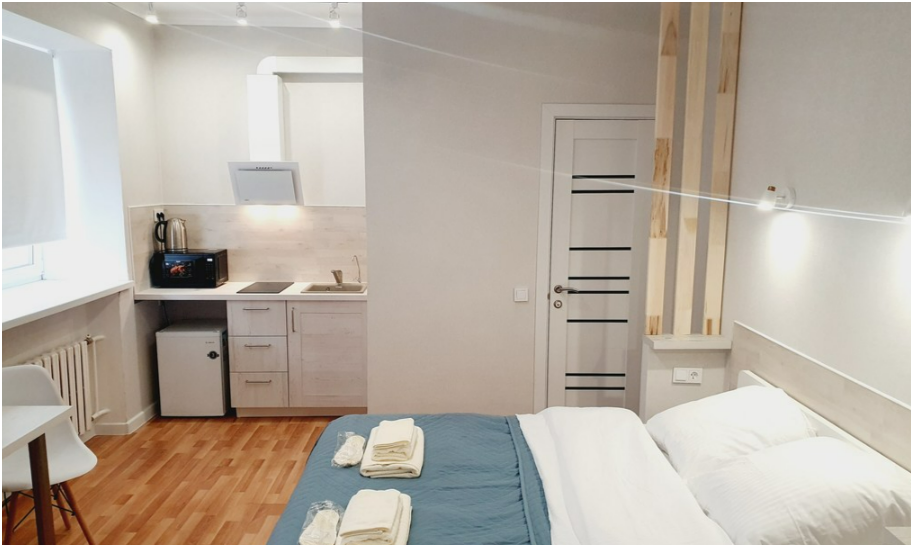 Мы предлагаем ненавязчивый качественный сервис для размещения гостей с уклоном на домашний уют и функциональность. После прогулок по городу Вы сможете отдохнуть в тишине, у нас студии со звукоизоляцией и удобные кровати, а так же для Вас будет доступна возможность приготовления легкого завтрака или ужина на оборудованной кухне. В апартаментах для Вас есть возможность пользоваться микроволновкой, чайником, феном, утюгом, холодильником.