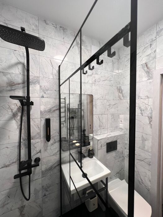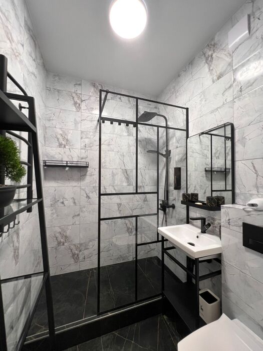 Размещение до 5 человек: кровать 180 х 200 см, раскладной диван Икеа 140 х 200 см, дополнительное место кресло-кровать Икеа 80 х 190 см. На кухне имеются стиральная машина, индукционная плита, холодильник, микроволновая печь, чайник, капсульная кофеварка, необходимая посуда. Круглогодичная горячая вода - газовый водонагреватель.