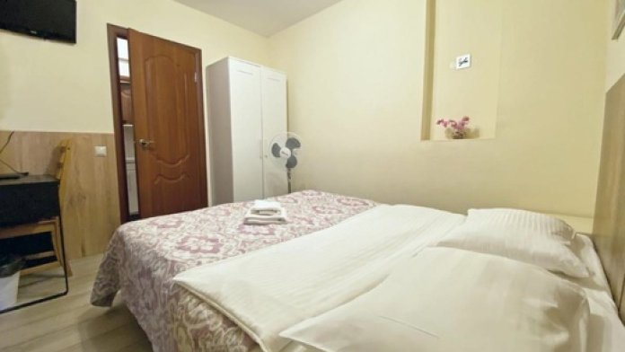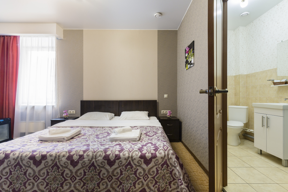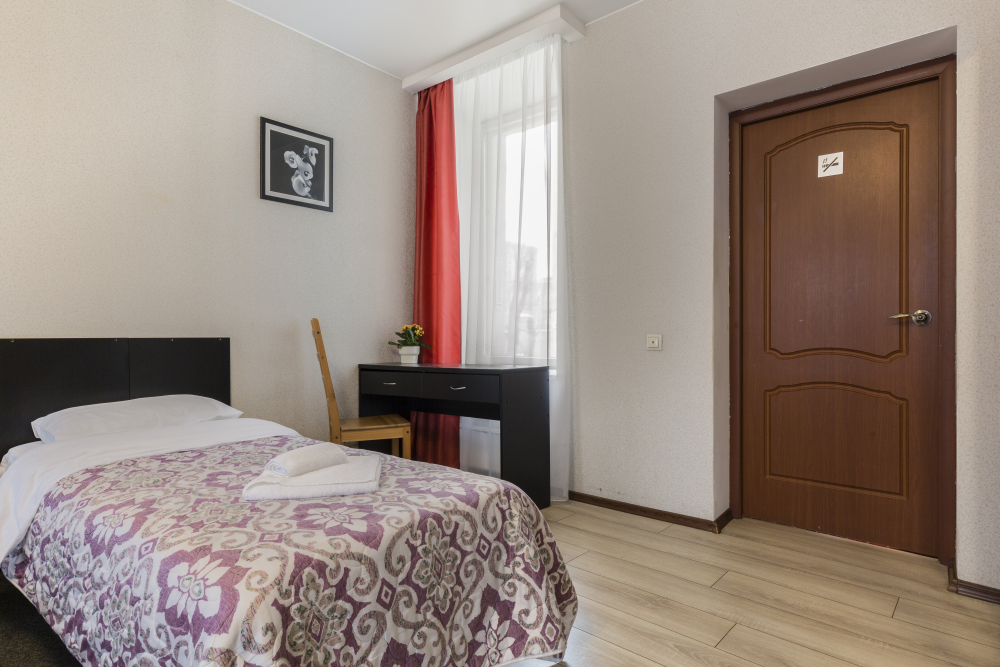 Номер с одной двухспальной кроватью. Небольшой номер с собственным санузлом подходит для кратковременной бюджетной поездки. В номере НЕТ ОКНА.