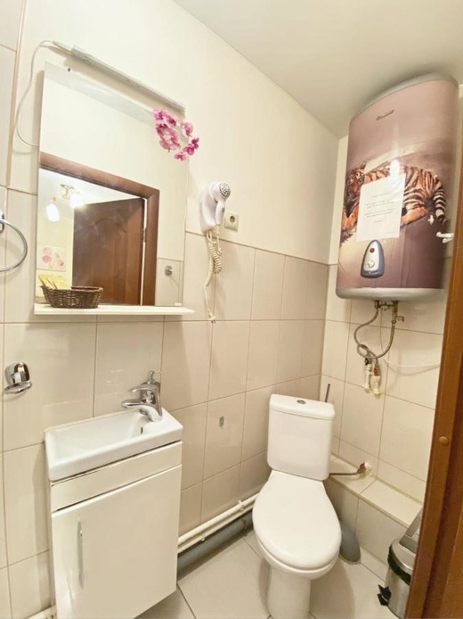 Гостей ожидает уютное спальное место и светлая ванная комната с большим окном.