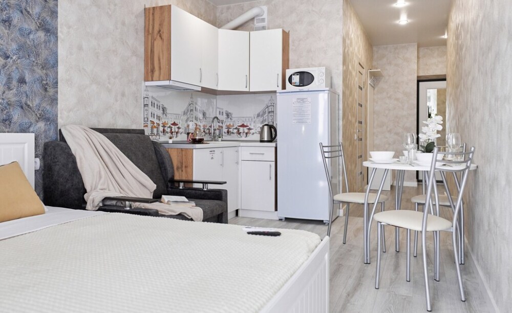 Рады приветствовать Вас! У нас в апартаментах есть все необходимое для комфортного проживания: бесплатный Wi-Fi, кондиционер, свежее постельное белье и полотенца, телевизор, ванная комната, душ, туалет, гигиена (туалетная бумага, жидкое мыло), стиральная машина, холодильник, оборудованная кухня и посуда.