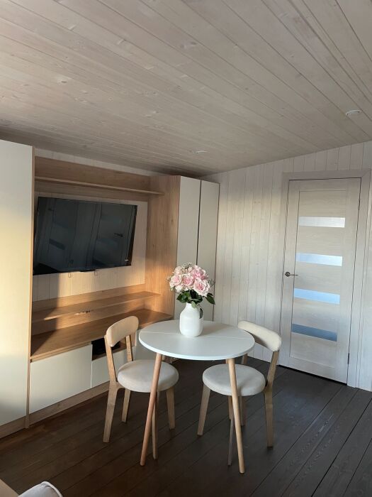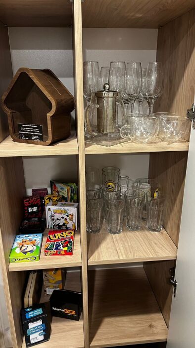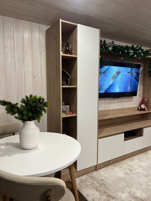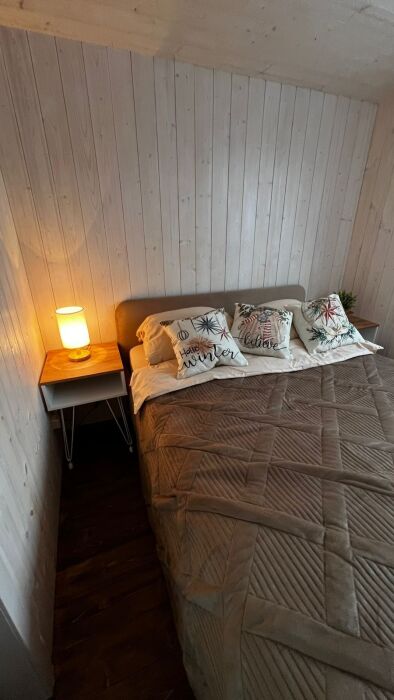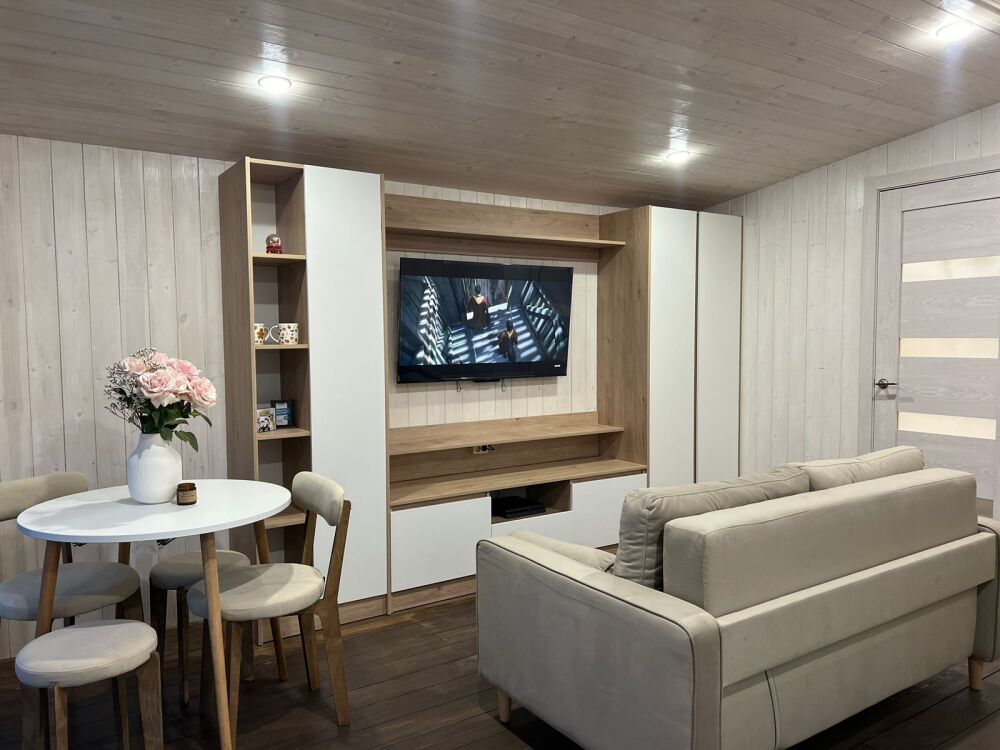 В доме есть: 2 комфортные спальни с 2-спальными кроватями, большой раскладной диван на 2 спальных места. Санузел с душевой кабиной, туалетом и раковиной. Настольные игры. 2 комплекта столовых приборов и посуды разного цвета. Минимальный кухонный набор (масла, специи, чай, кофе). Техника: телевизор с Алисой, Sоny РlаyStаtiоn 4 с играми, посудомоечная машина, стиральная машина, кофе машина, чайник, микроволновая печь, большой холодильник с морозилкой.
